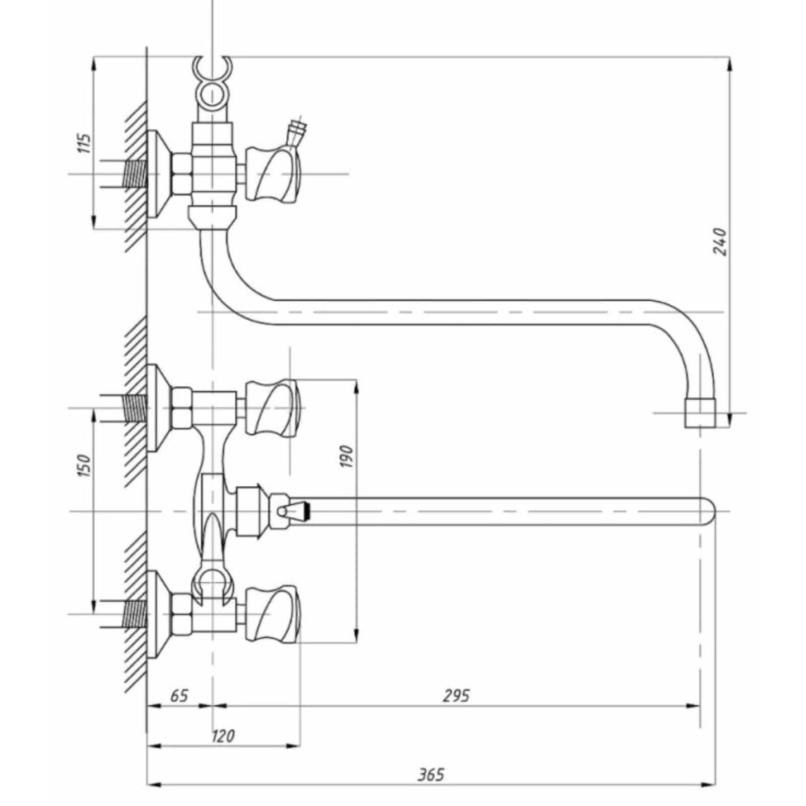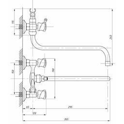 Смеситель для ванны TSARSBERG TSB-111-34, двухвентильный, излив 295 мм, лейка, хром
