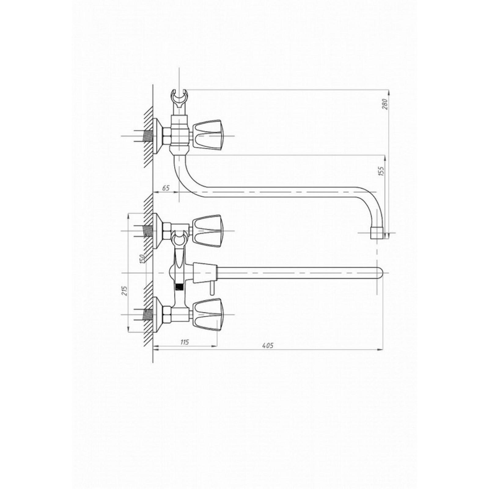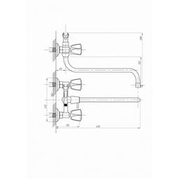 Смеситель для ванны FAUZT FZs-471-17, двухвентильный, излив 340 мм, лейка, хром
