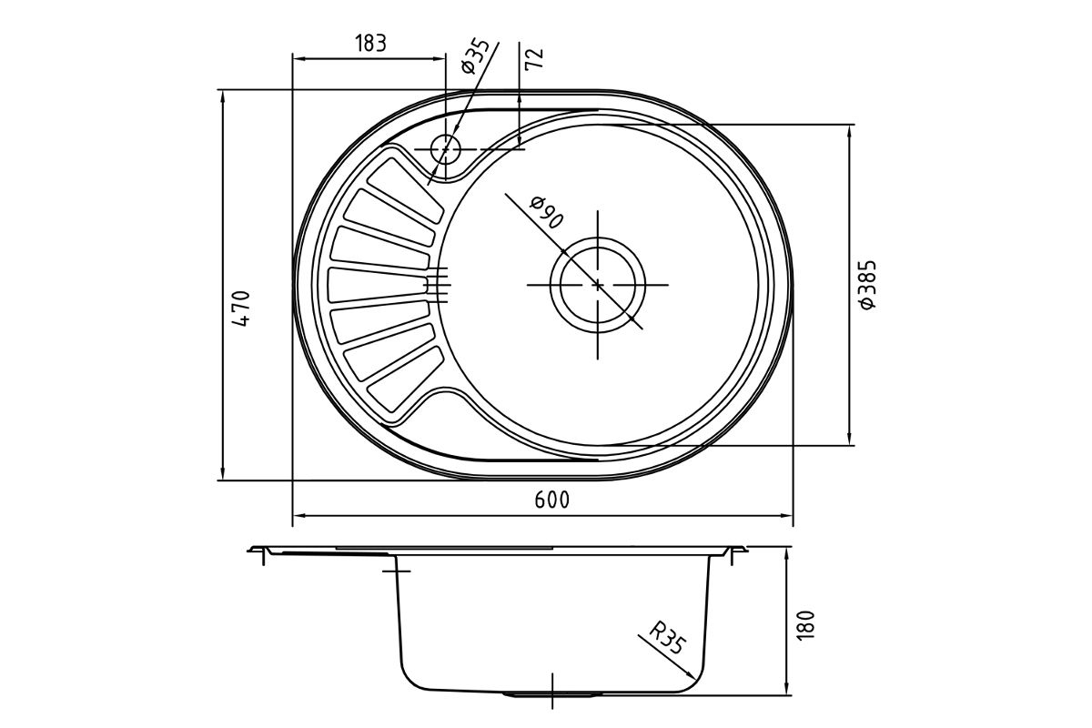 Мойка кухонная IDDIS Suno S 600х470 мм чаша справа SUN60SRi77