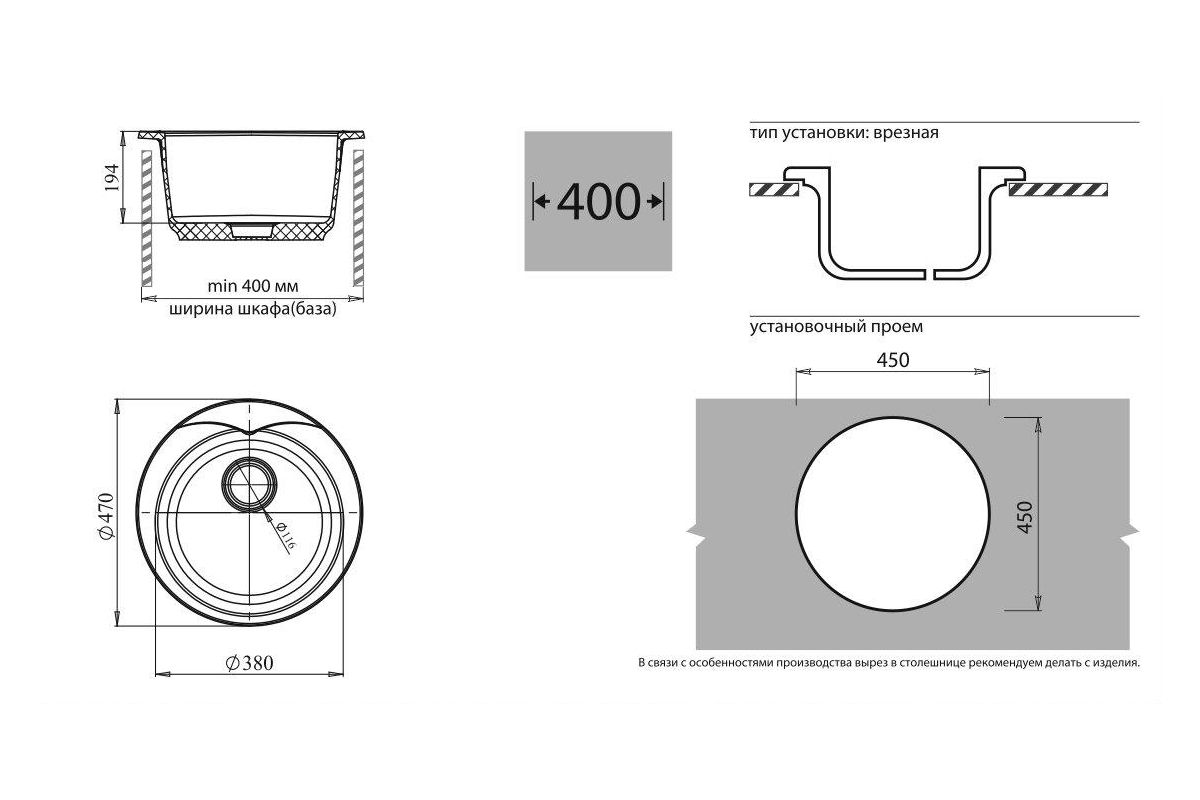 Мойка кухонная GRANFEST RONDO GF-R--480 черный
