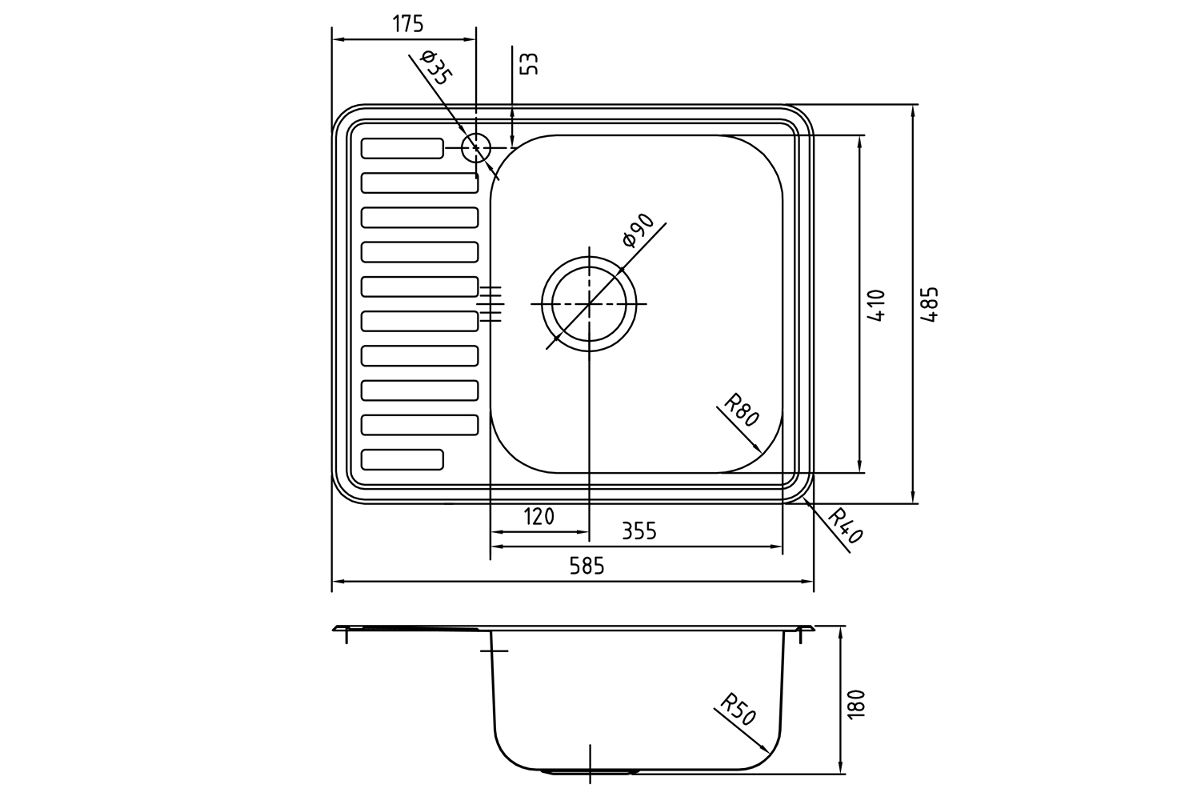 Мойка кухонная IDDIS STR58PRi77 нержавеющая сталь полированная чаша справа 585х485 Strit S