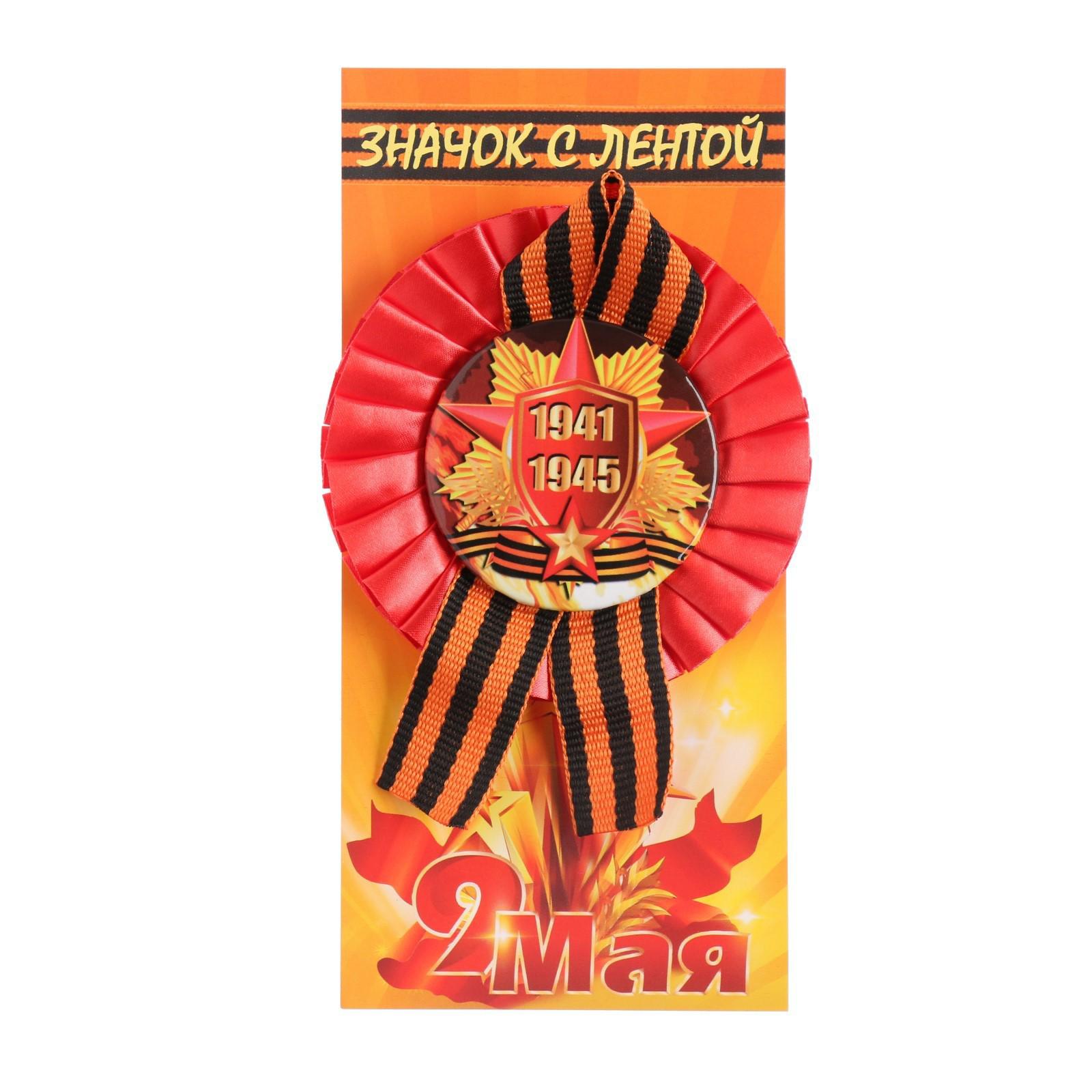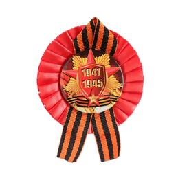Значок на подложке с лентой и юбкой "9 Мая" звезда