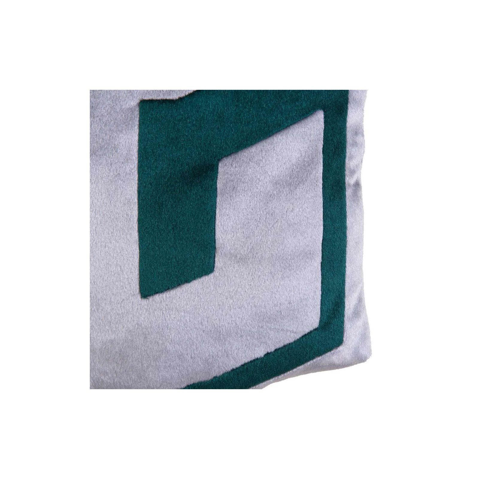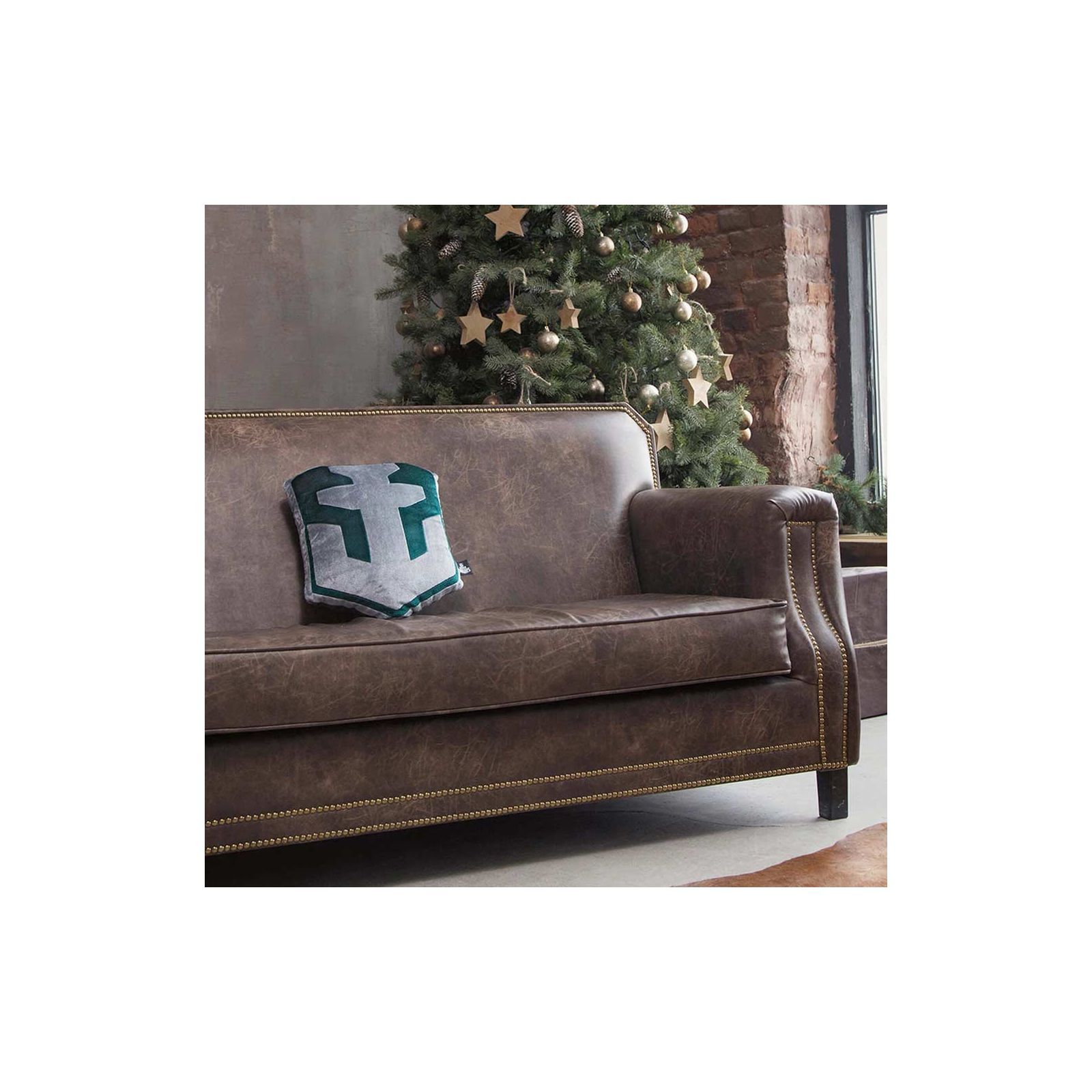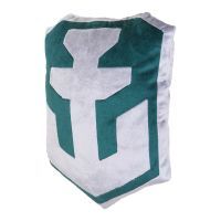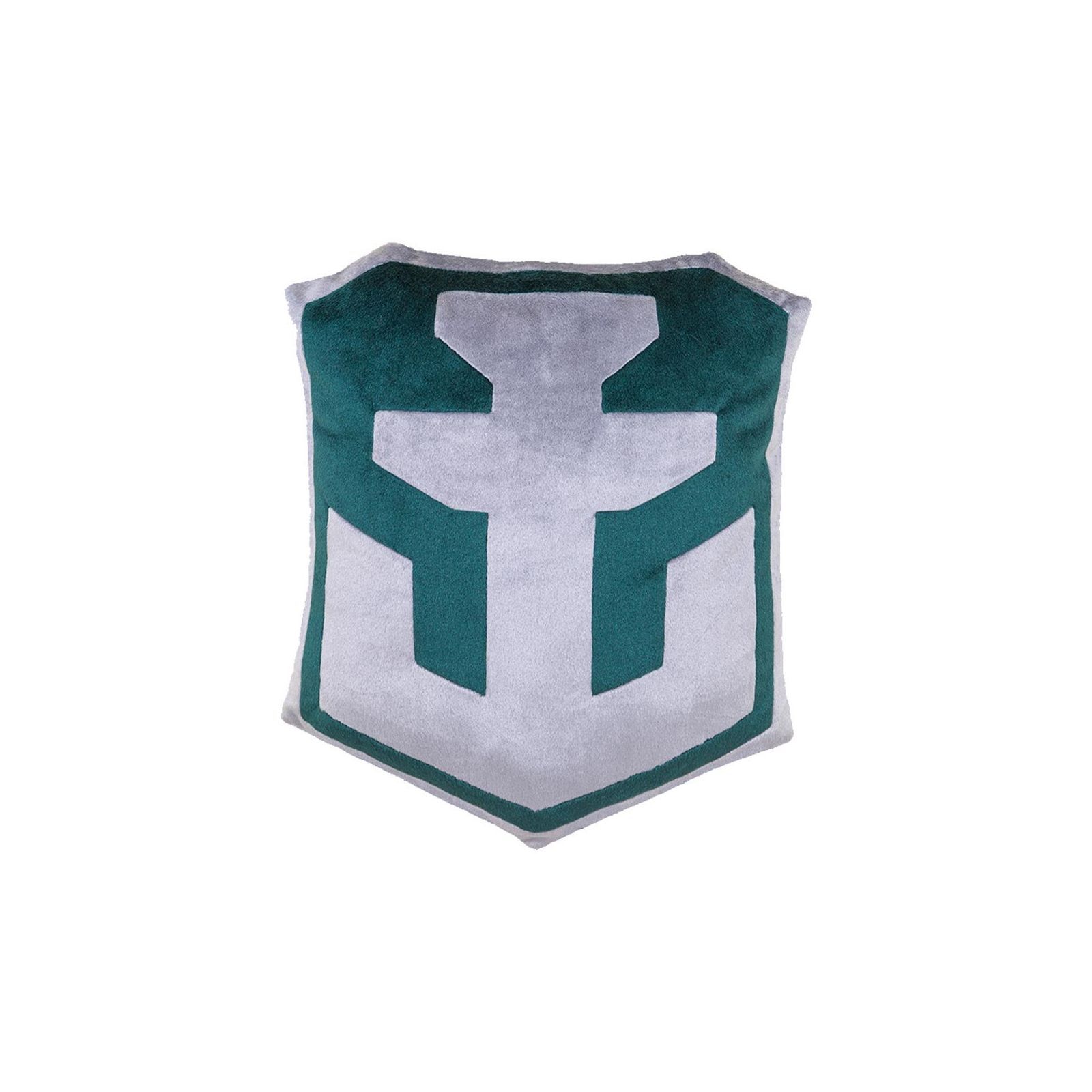 Оригінальний подарунок для шанувальників гри World of Warships — декоративна подушка з логотипом гри World of Warships у формі семикутника, сіро-зеленого кольору. На лицьовому боці подушки зображений логотип гри World of Warships .