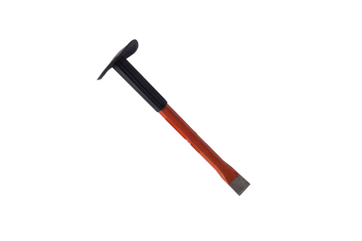 Зубило изготовлено из стали. Рукоятка с пластмассовым протектором для защиты рук от удара. Рабочая часть инструмента окрашена. Предназначено для проделывания различных углублений для проводов, труб, в твердых основаниях (бетон, кирпич, камень), а также придания необходимой формы конструкции (стесывания углов, выпуклостей, неровностей) и рубки тонкого листового металла. Размер инструмента 16х250х20 мм.