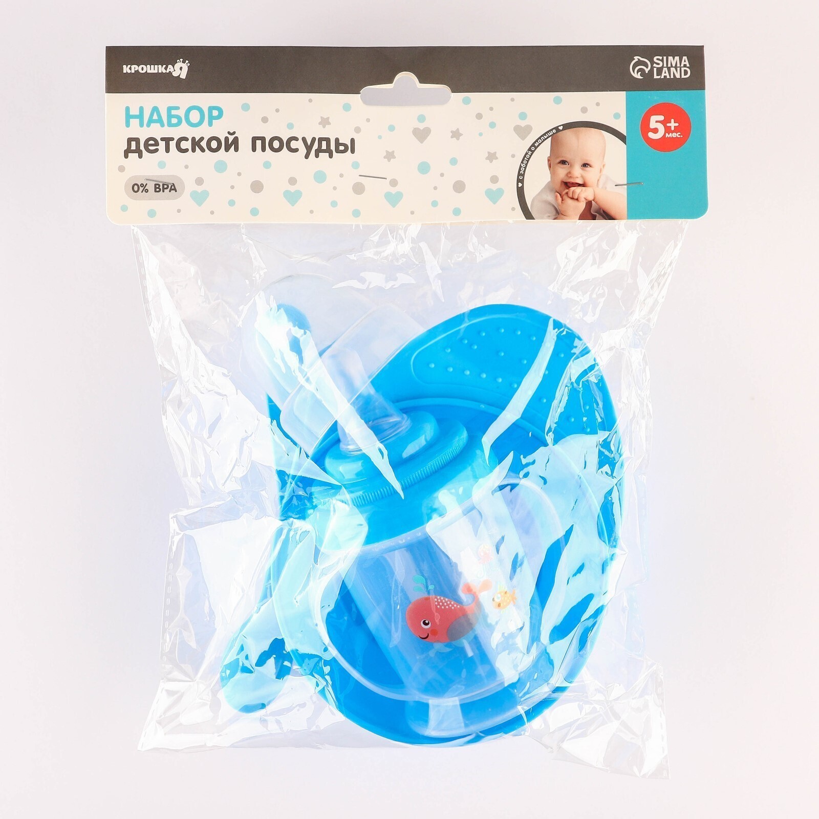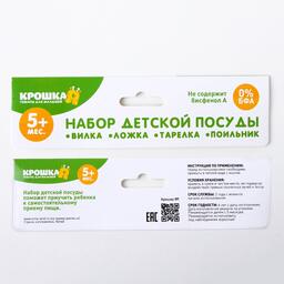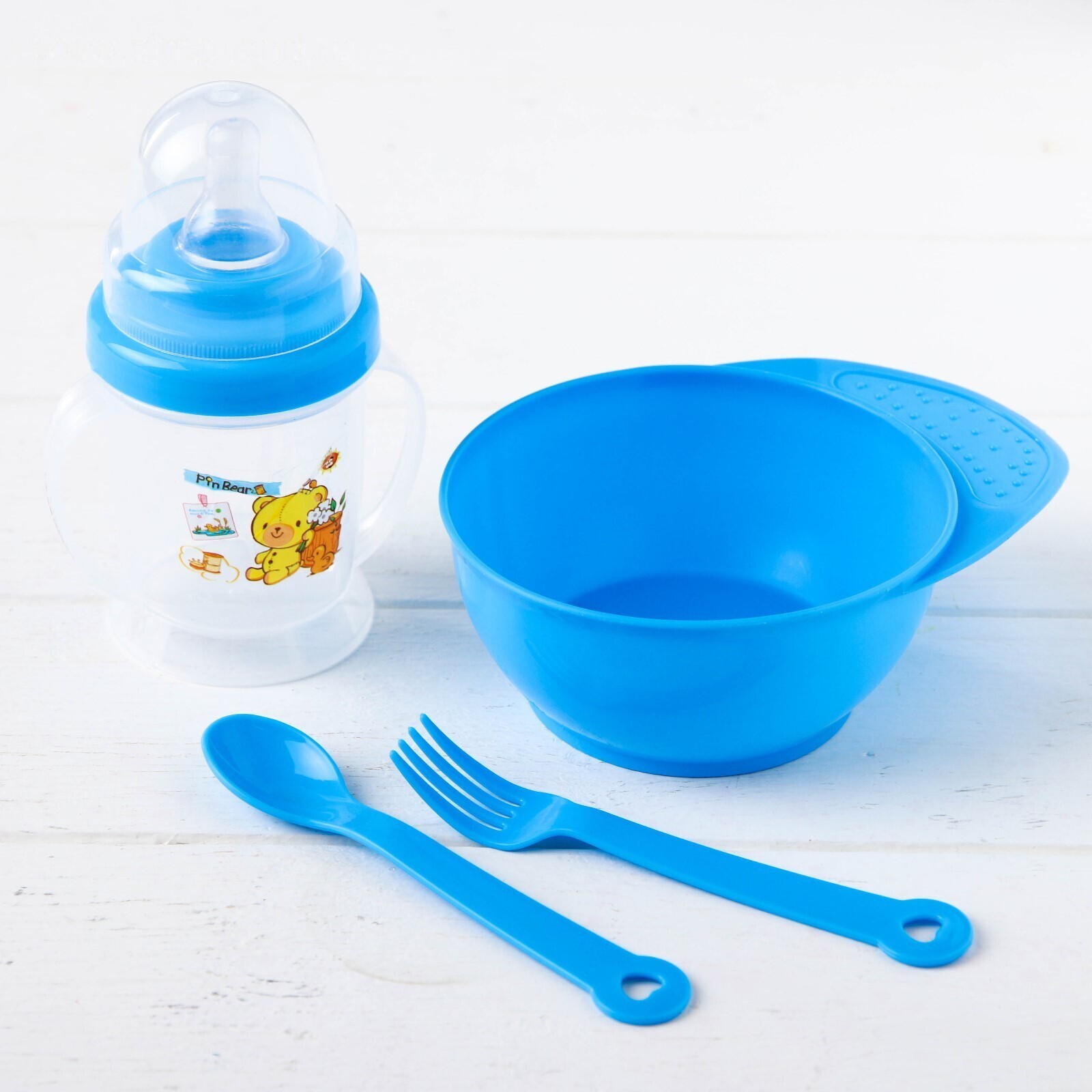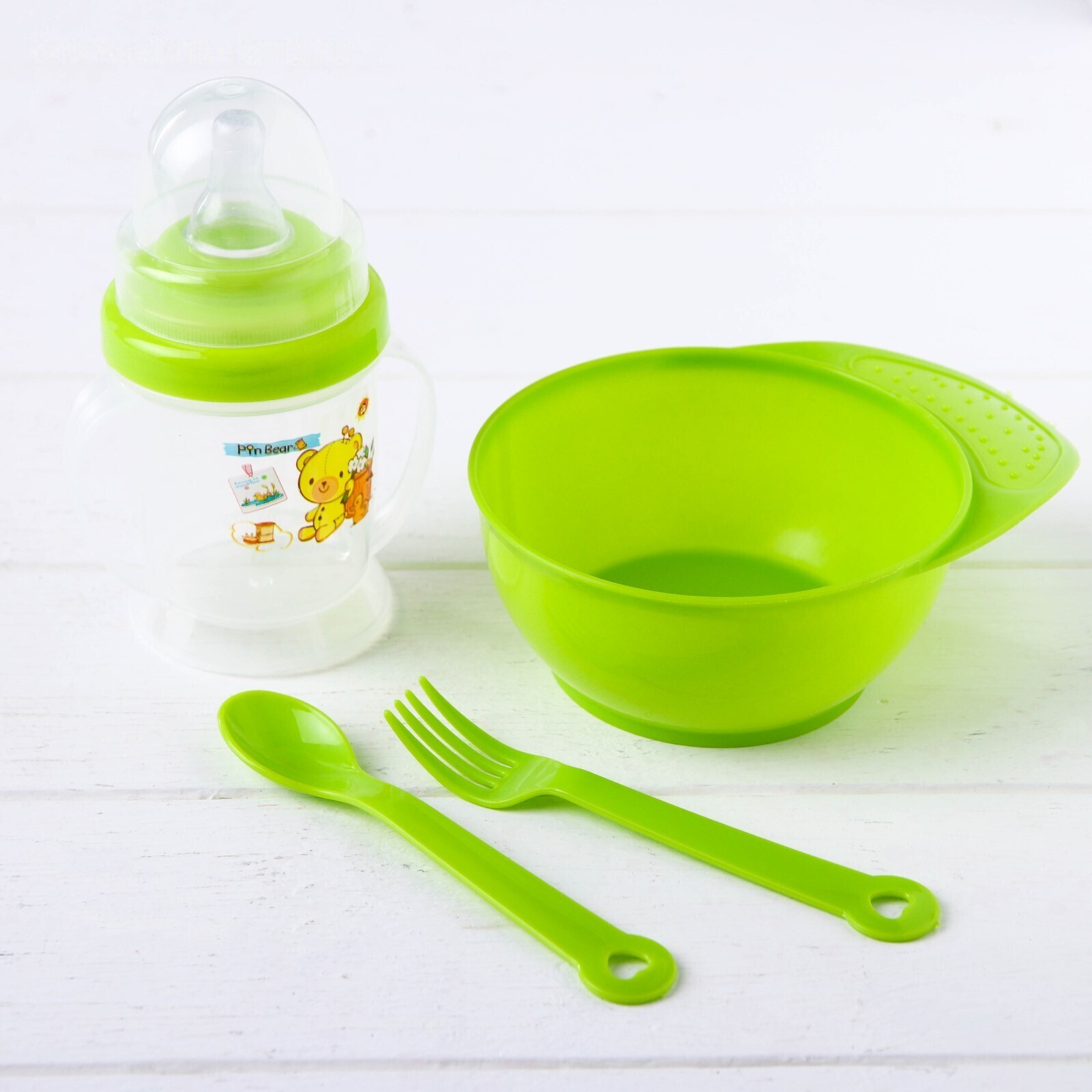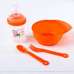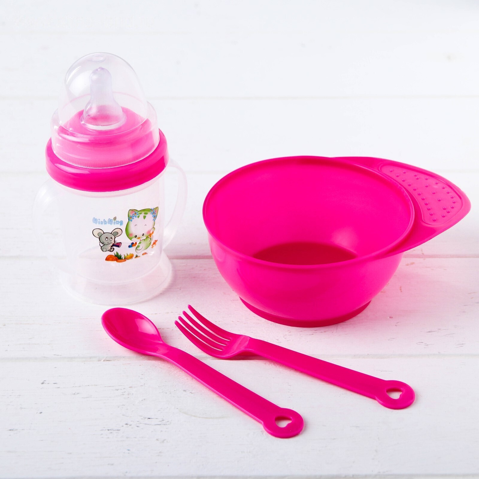 Набор детской посуды, 4 предмета: миска 300 мл, бутылочка для кормления 180 мл, ложка, вилка, цвета СЮРПРИЗ