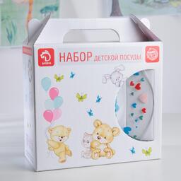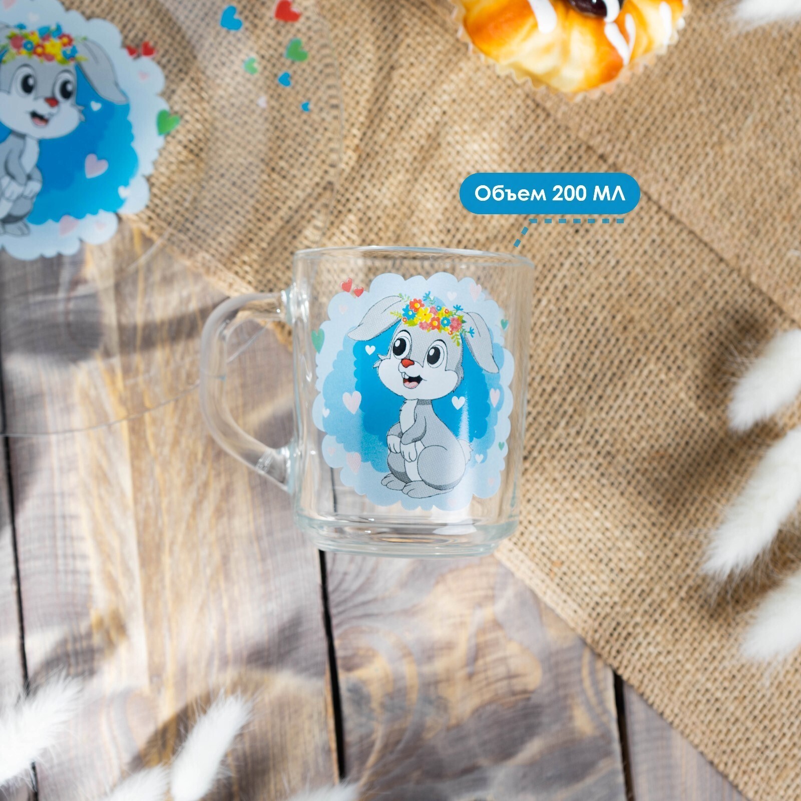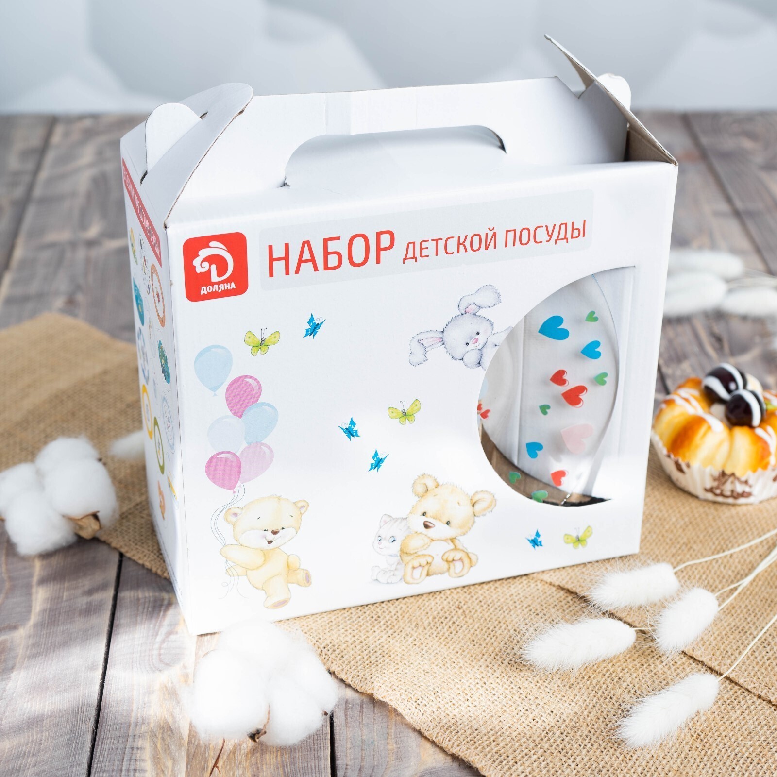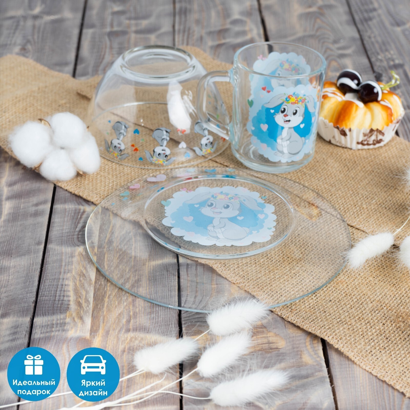 Набор детской посуды Доляна «Зайчонок», 3 предмета: кружка 200 мл, миска 450 мл, тарелка d=20 см