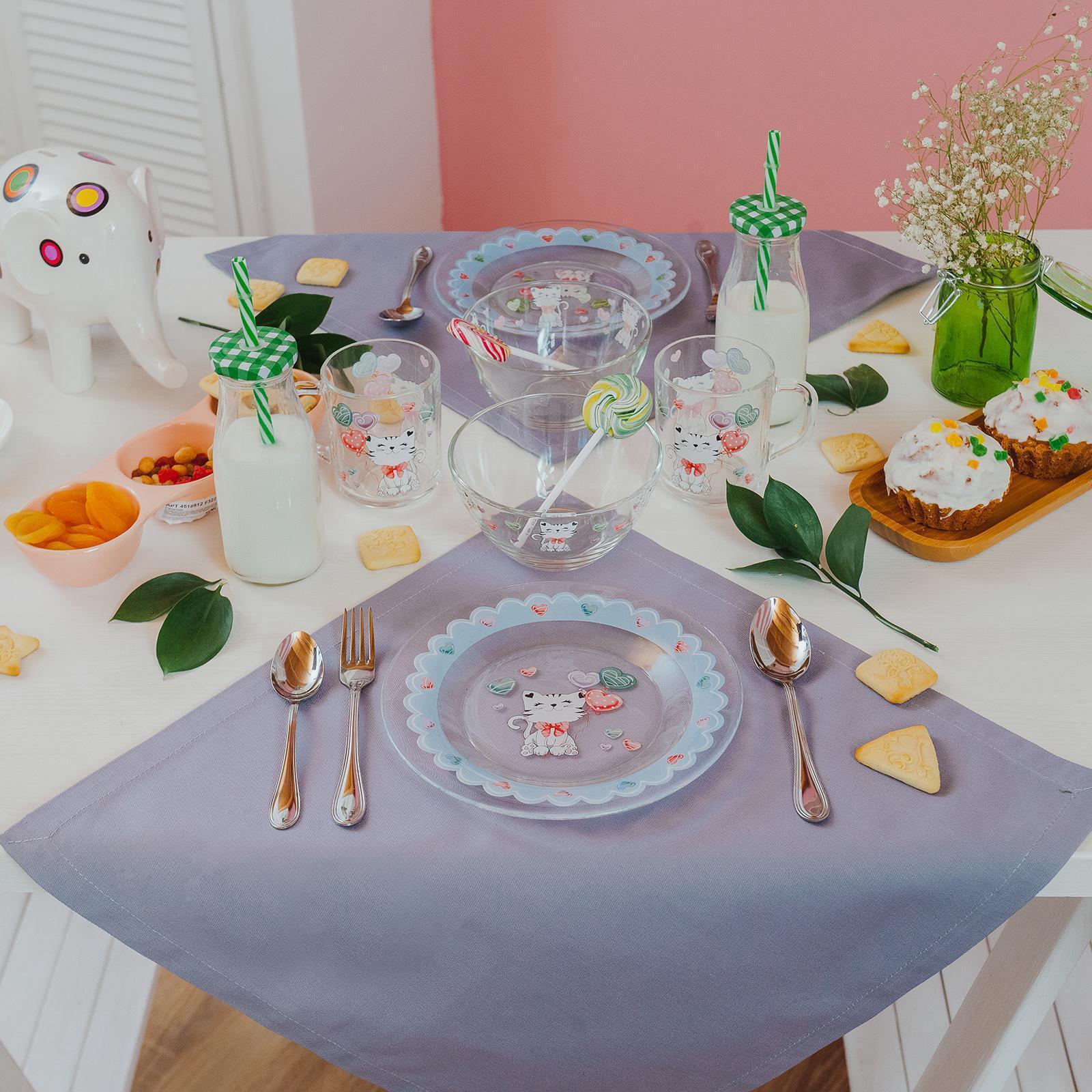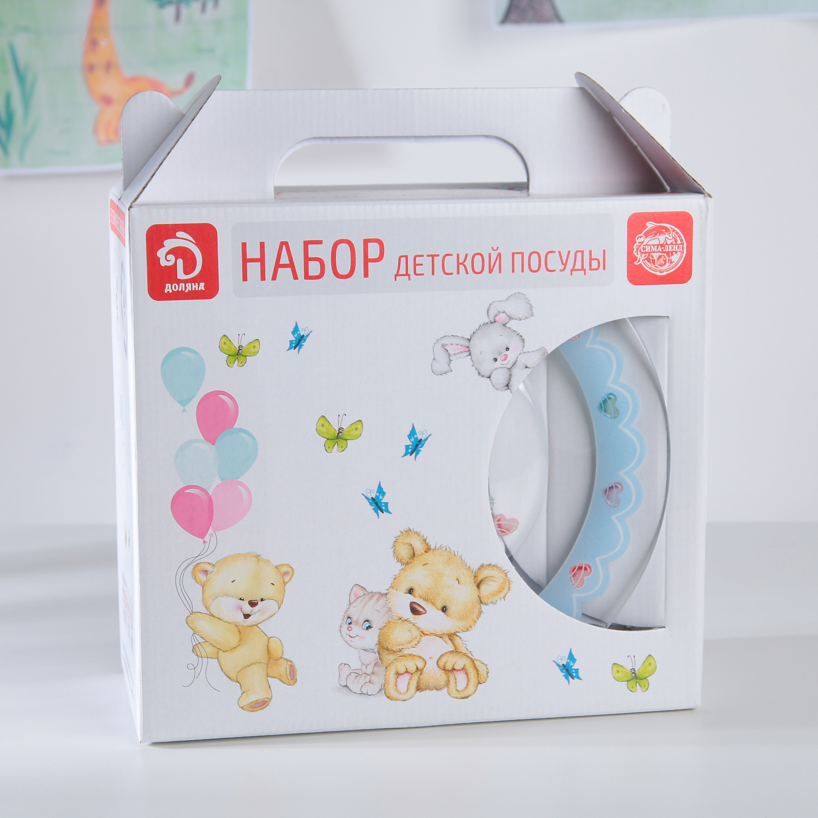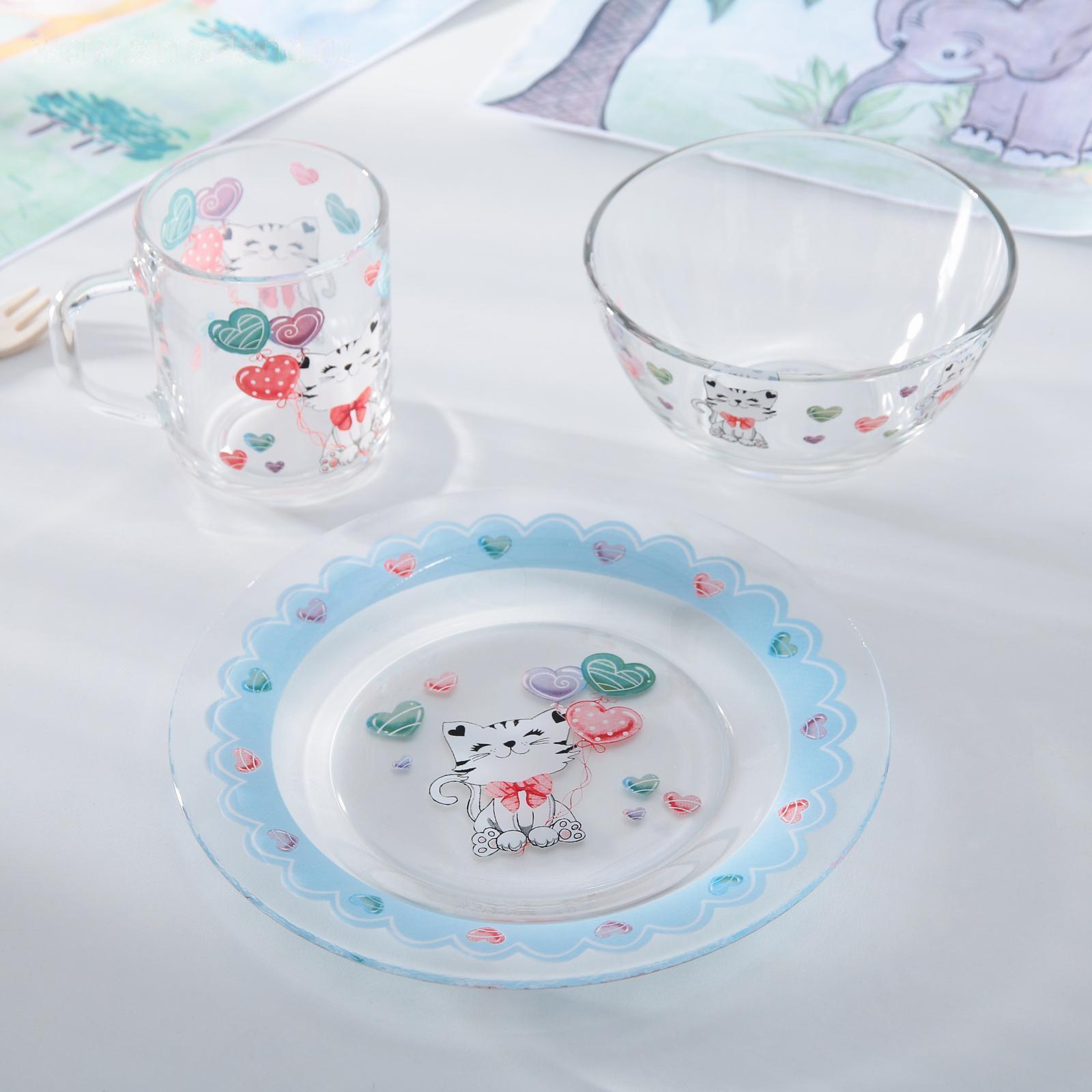 Набор детской посуды Доляна «Котёнок», 3 предмета: кружка 200 мл, миска 450 мл, тарелка d=20 см