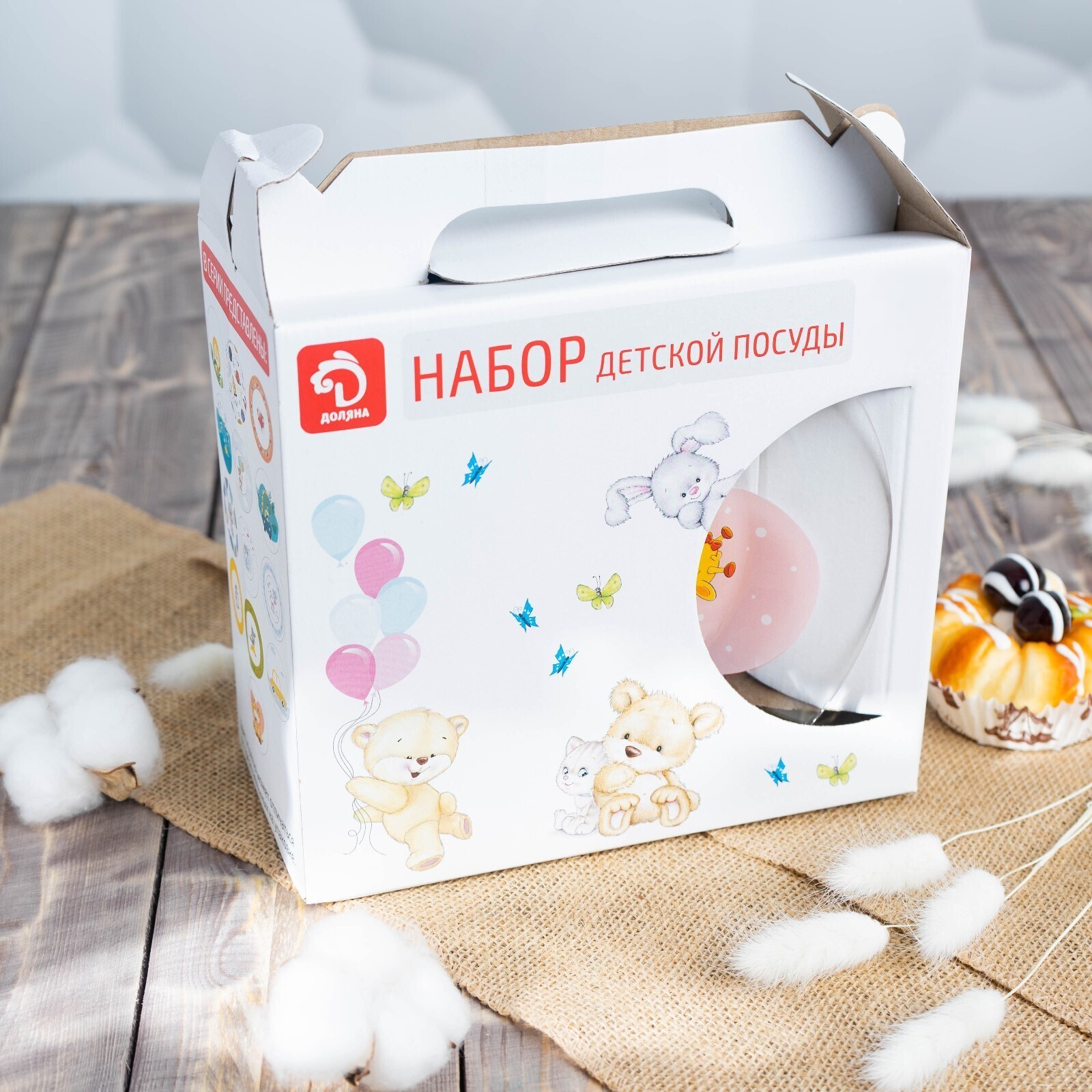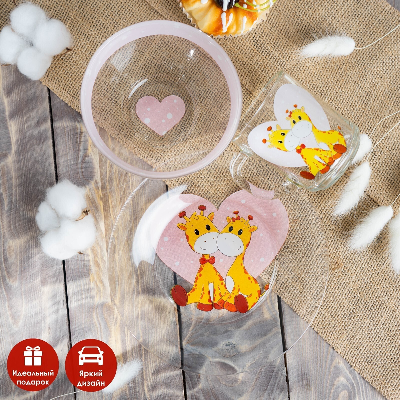 Набор детской посуды Доляна «Жирафы», 3 предмета: миска 450 мл, тарелка d=20 см, кружка 200 мл
