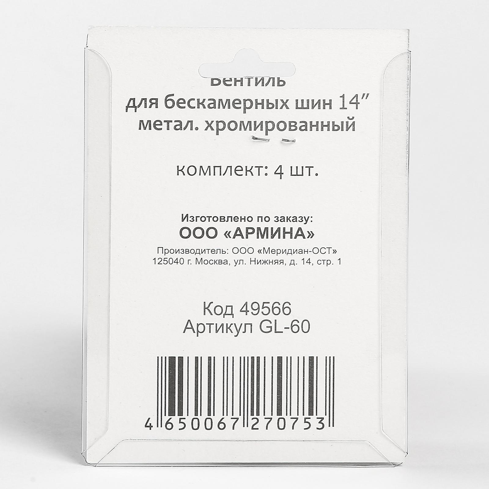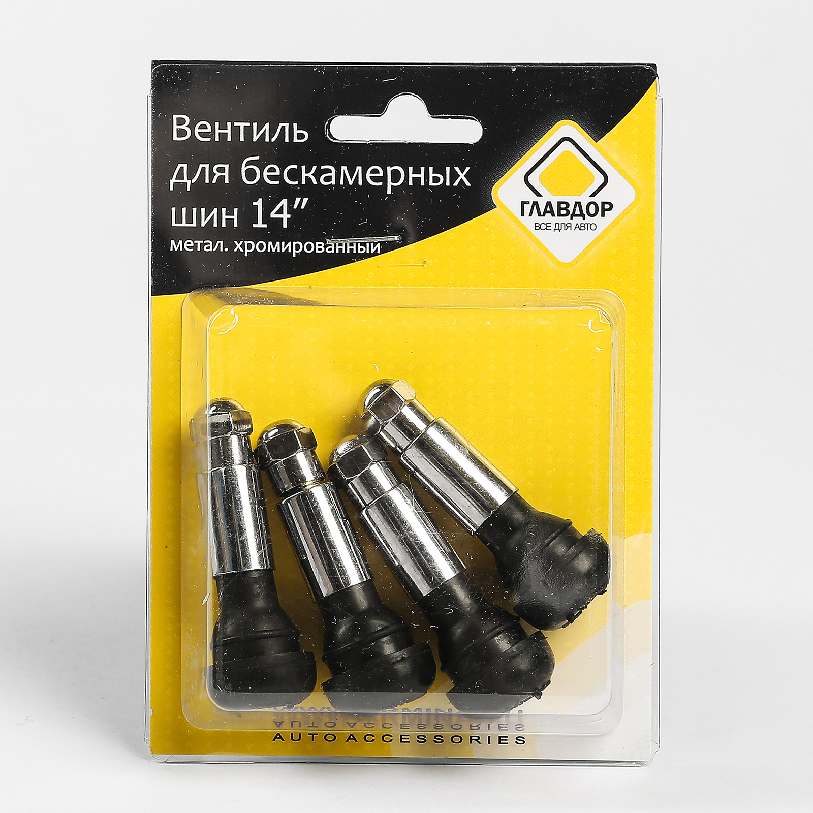 Вентиль для бескамерных шин "ГЛАВДОР" 14", металлический, набор 4 шт.