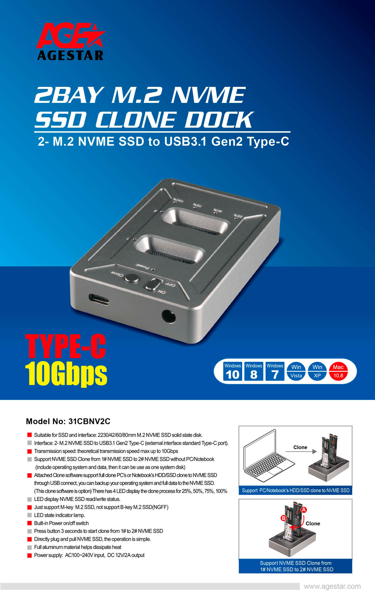 Особенности4 светодиодных дисплея для автономного клонирования. Прилагаемое программное обеспечение для клонирования поддерживает полное клонирование жесткого диска ПК или ноутбука на твердотельный накопитель NVME через USB-соединение вы можете создавать резервную копию своей ос и всех данных.