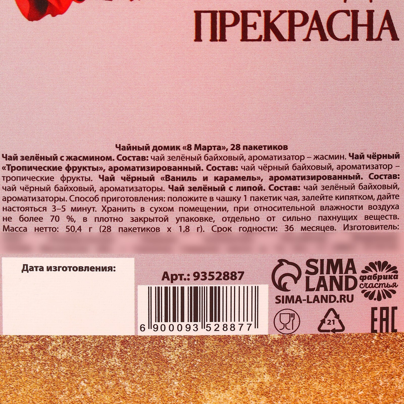 Чайный домик с чаем «8 марта», 28 пакетиков