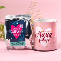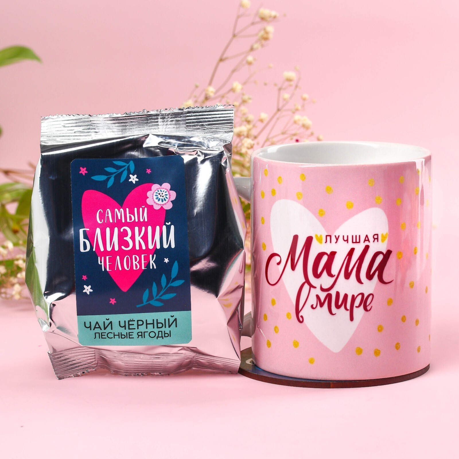 Подарочный набор «Маме»: кружка 350 мл, подставка, чай со вкусом лесных ягод 50 г.