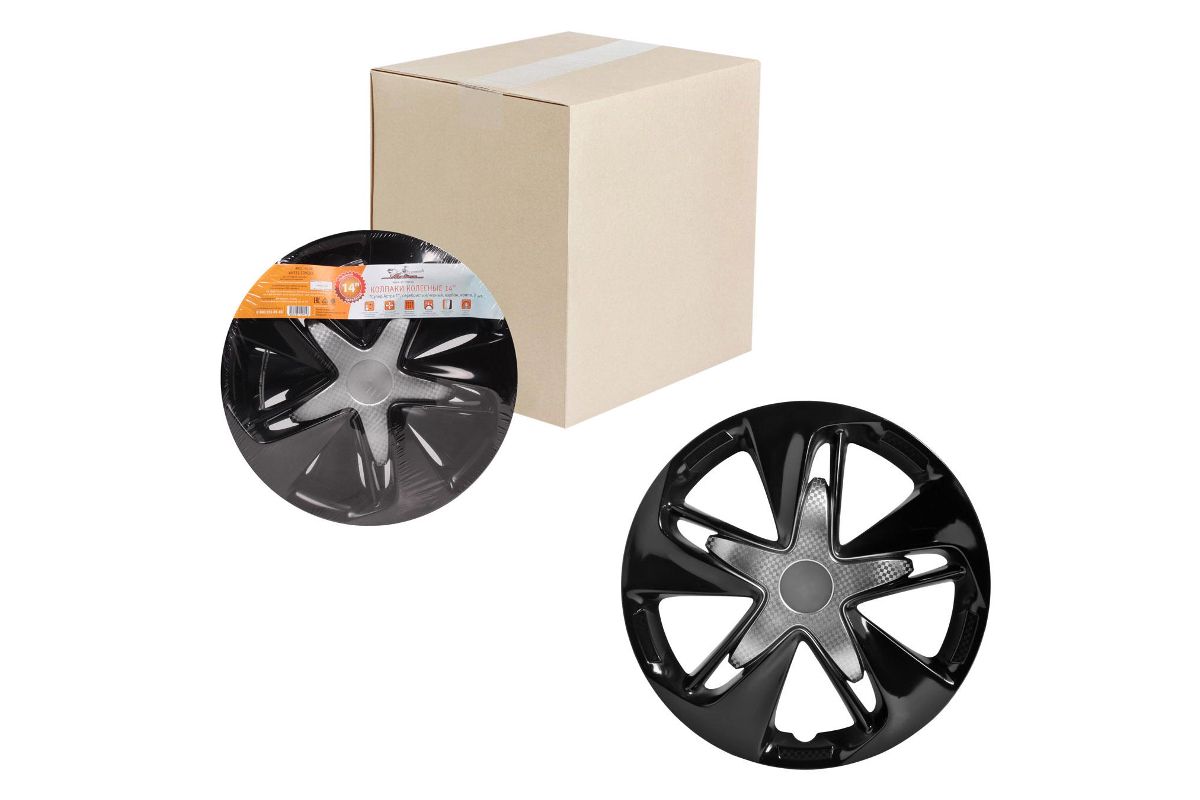 Колпаки колесные AIRLINE AWCC-14-28 14'' ''Супер Астра Т'', серебристый/черный, карбон, компл. 2 шт.