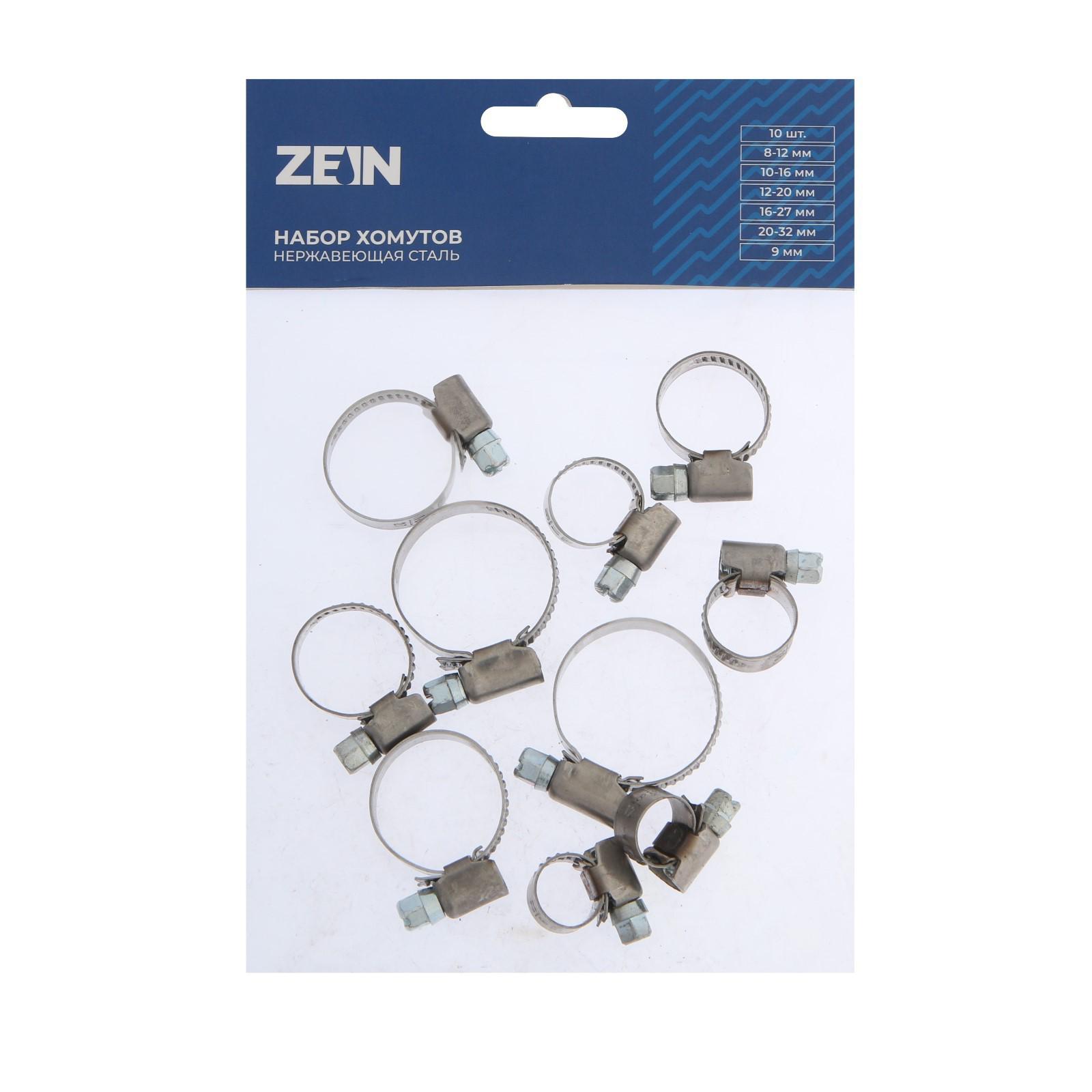 Набор червячных хомутов ZEIN engr, d=8-12, 10-16, 12-20, 16-27, 20-32 мм, 9 мм, нерж, 10 шт