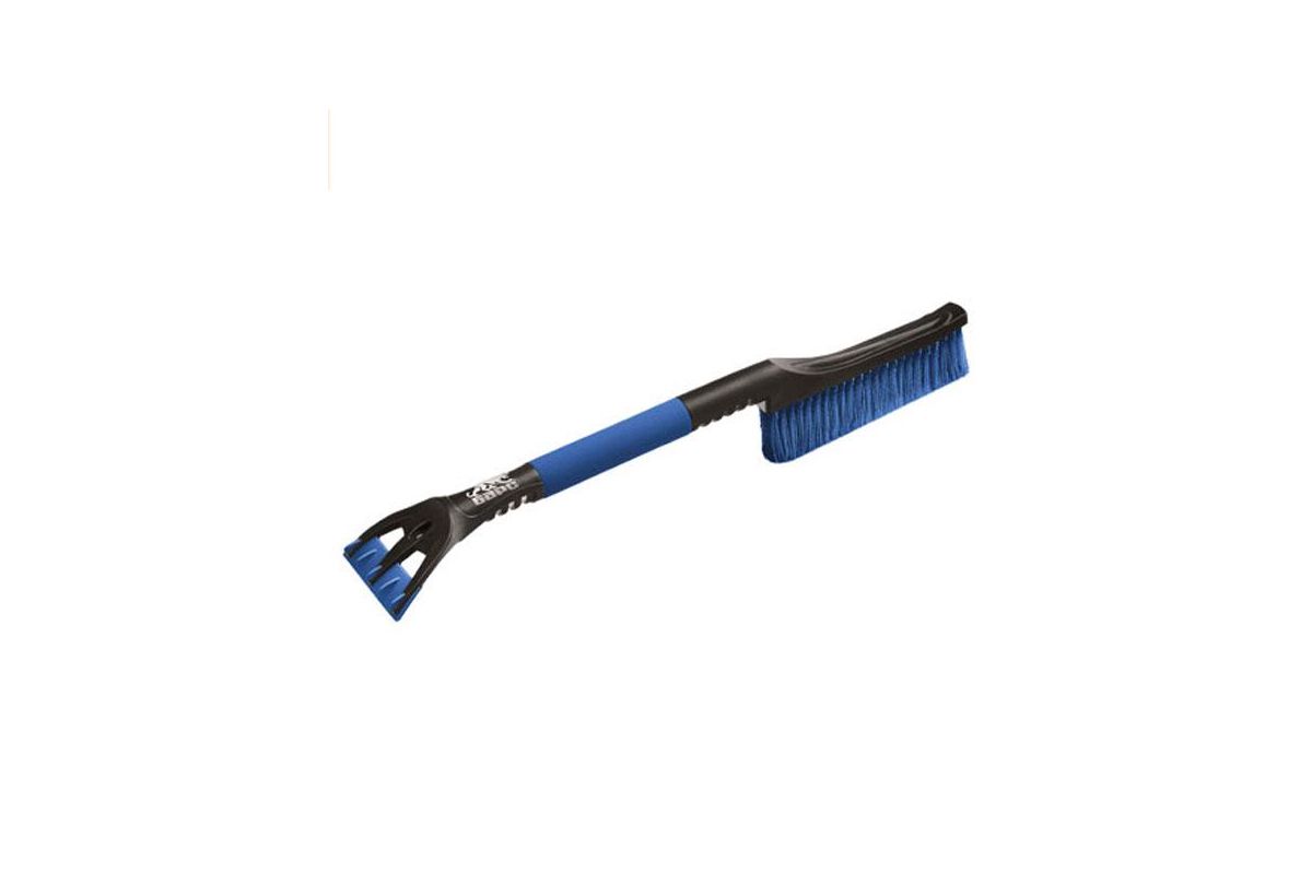 Легкая щетка средних размеров со скребком из жесткогополимера. Удобный размер и эргономичный дизайн.Упругая, распушенная щетина. Теплая ручка.