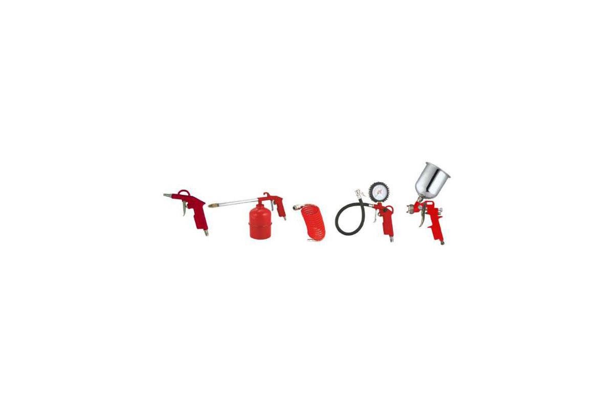 Набор пневмоинструмента,5шт:пистолеты прод,мовил,нак.шин,шланг,краскопульт(верх.бак,метал)