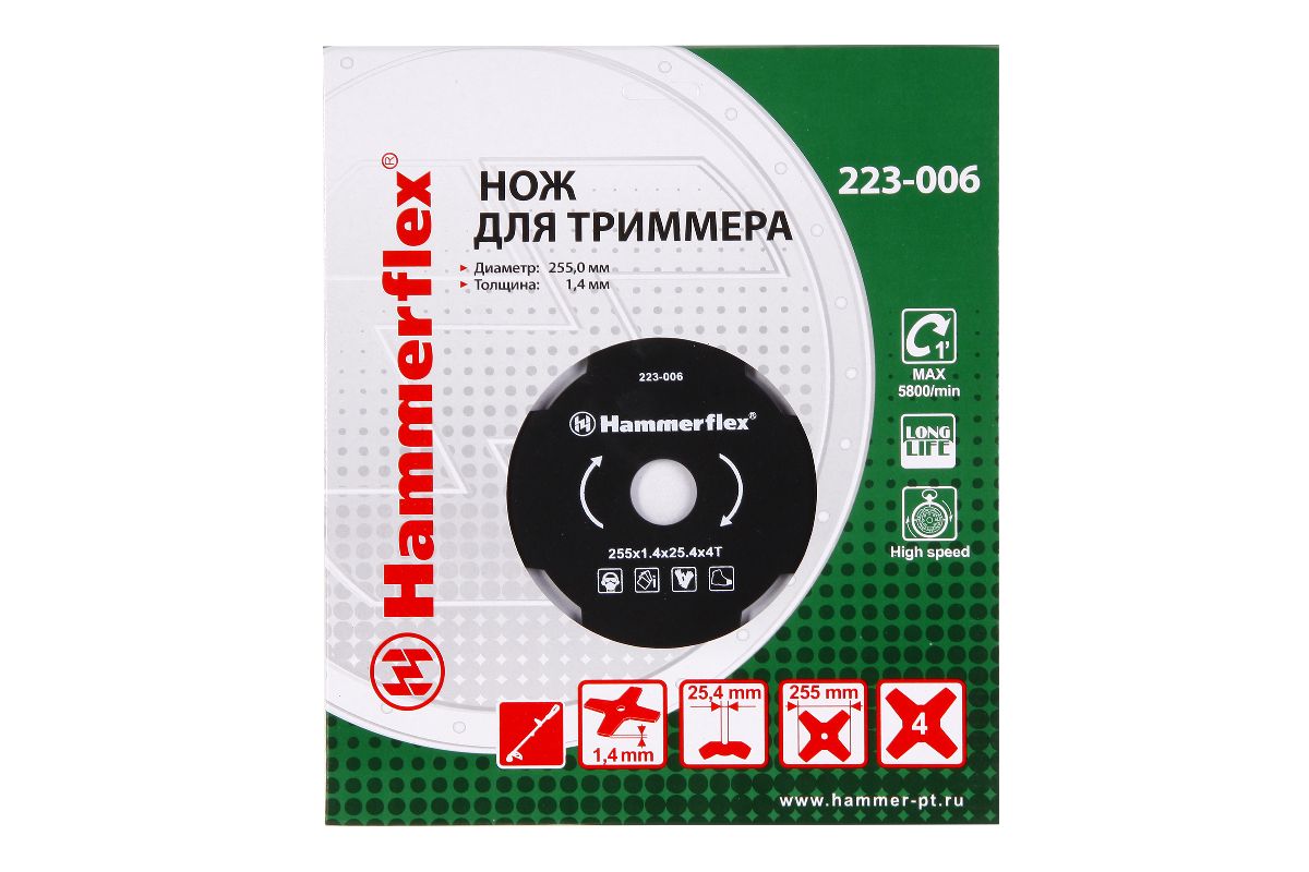 Нож для триммера Hammer Flex 223-006 закаленная сталь, 4 зуба, толщина 1,4 мм, d=255 мм