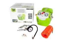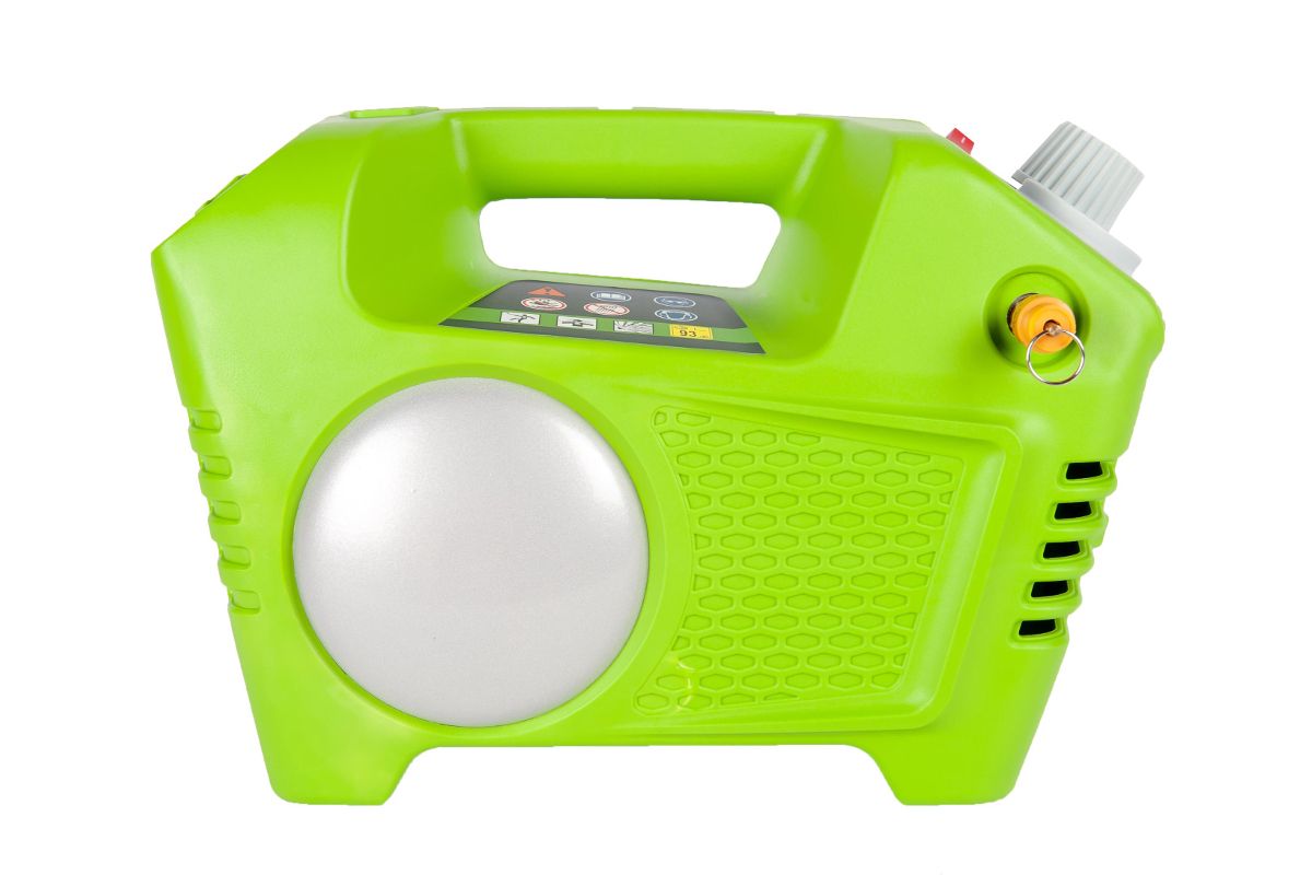 Аккумуляторный компрессор представляет собой компактный агрегат безмасляного типа для накачки мотоциклетных и велосипедных шин, а также надувных матрасов, лодок, плавательных кругов или мячей. Модель способна работать в автономном режиме. Функция автоматического отключения и включения обеспечивает удобство в эксплуатации. Специальный клапан на ресивере позволяет быстро спустить воздух и слить образовавшийся конденсат.