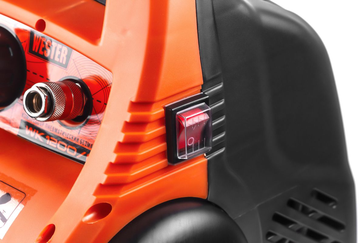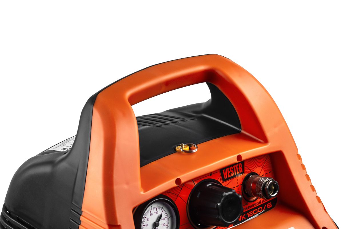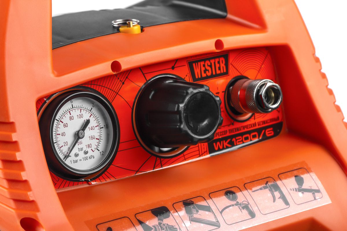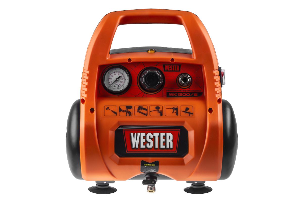 Безмасляный поршневой компрессор WESTER WK1200/6 применяется для обеспечения чистым сжатым воздухом пневмоинструмента.