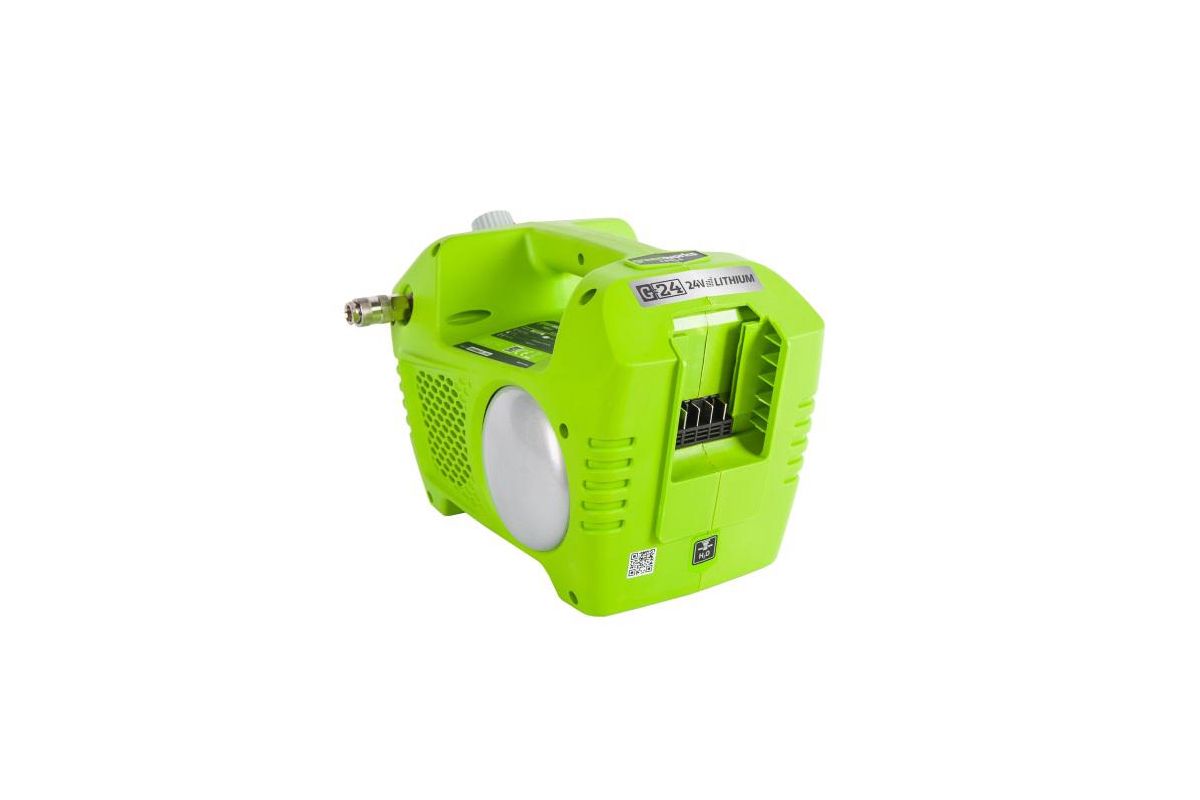 Компрессор электро GREENWORKS 4100302 24В ресивер 2л давление 8Бар безмасляный (БЕЗ АККУМ и ЗУ)