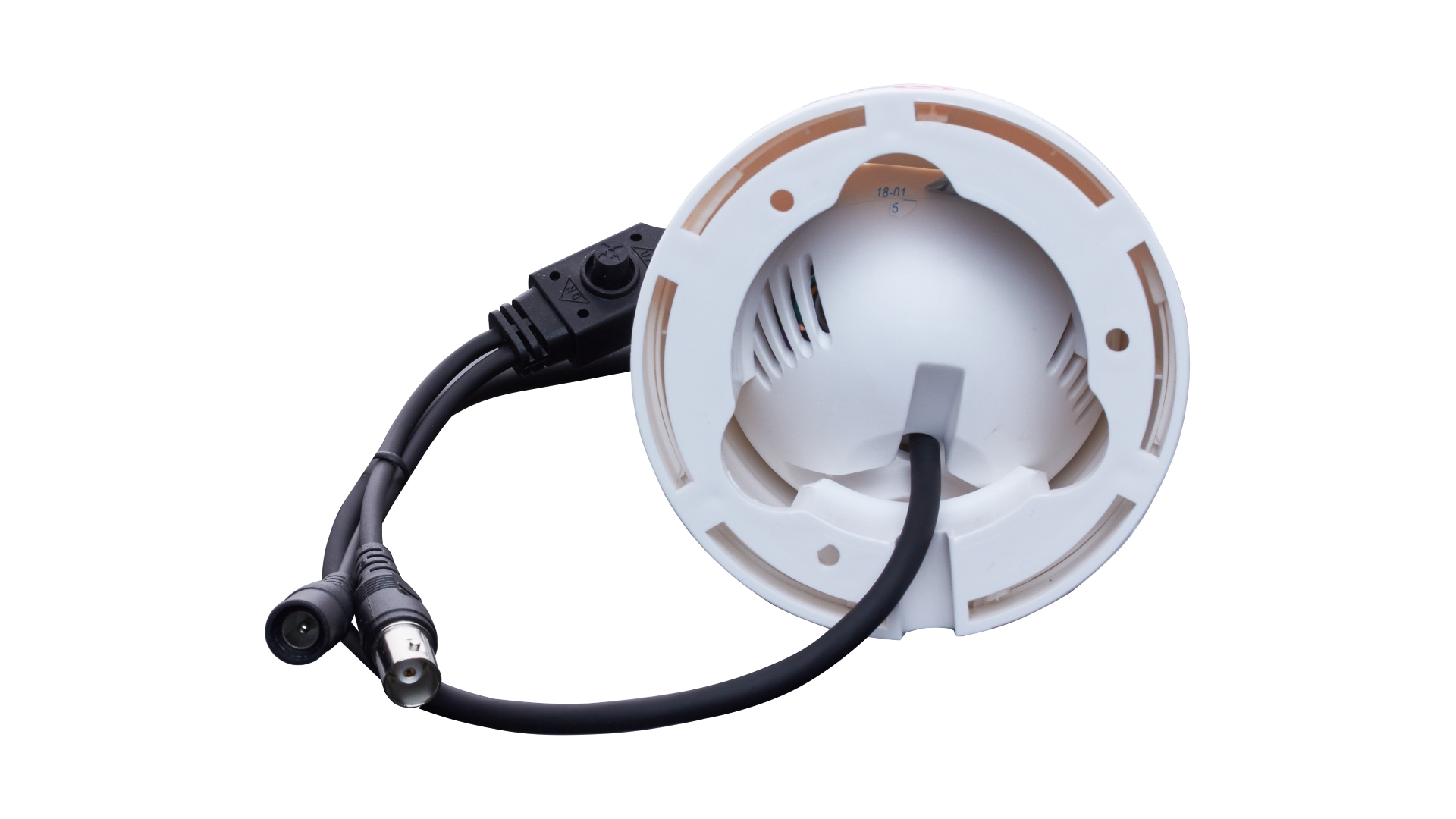 Купольная видеокамера 1 Мп, фиксированный объектив 2.8 мм, дальность ИК подсветки 20 м, -10°C~+60°C, внешний БП (поставляется отдельно), 12В DC
