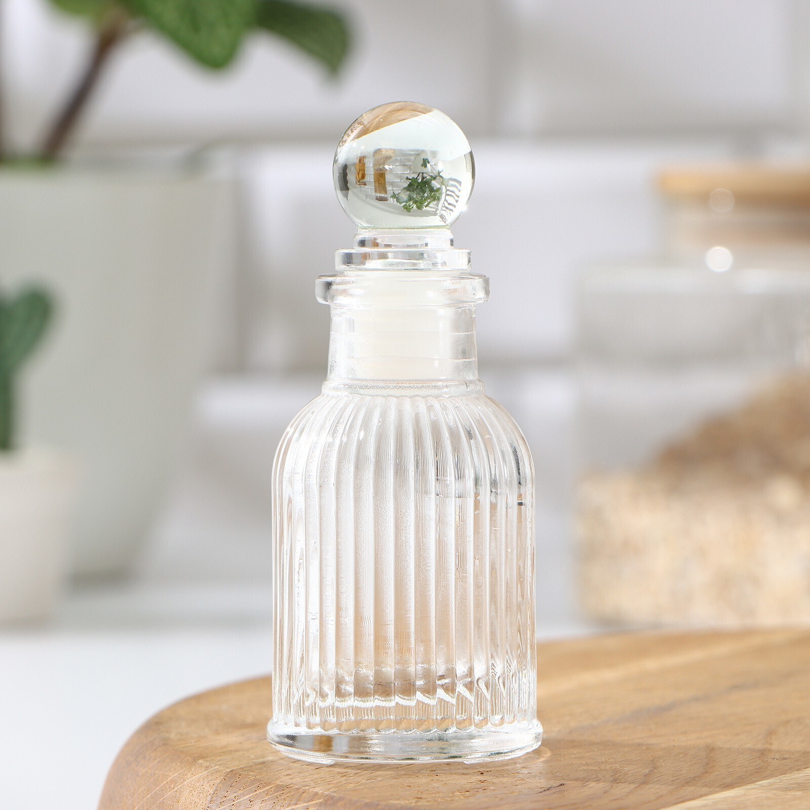Банка для сыпучих продуктов изготовлена из стекла. Имеет плотно закрывающуюся крышку, которая защищает продукты от влаги и посторонних запахов. В ёмкости удобно хранить крупы, специи, макаронные изделия, сахар, муку и бобовые.