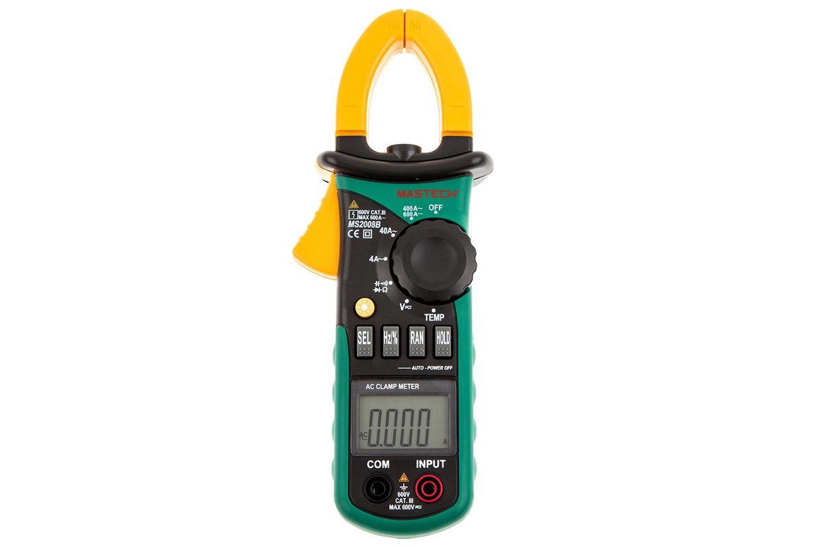 Токоизмерительные клещи MS2008B имеют автоматический выбор пределов измерений и позволяют измерять силу переменного тока, ёмкость, температуру окружающей среды, частоту и скважность импульсов.