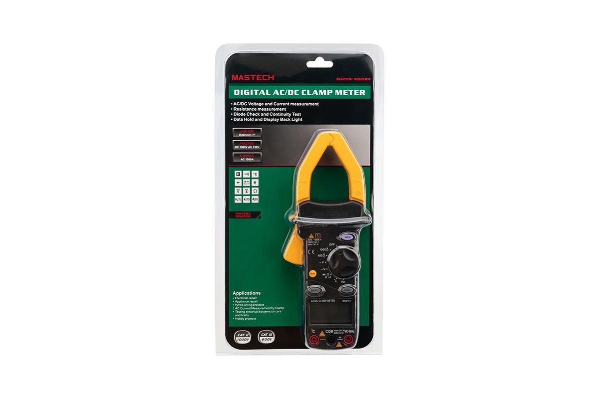 Токовые клещи позволяют производить измерения бесконтактным способом силу тока в электрической цепи, а также с помощью щупов измерять величину напряжения, сопротивления, емкости, частоту и относительную скважность сигнала, температуру окружающей среды. Предусмотрены функции проверки диодов и прозвонки электрической цепи.
