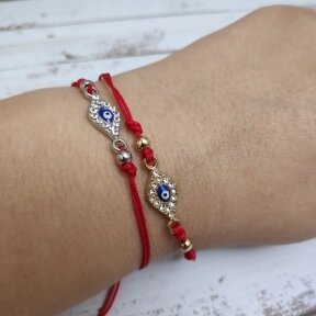 Браслет - оберег красная нить с подвеской Всевидящее Око, серебро