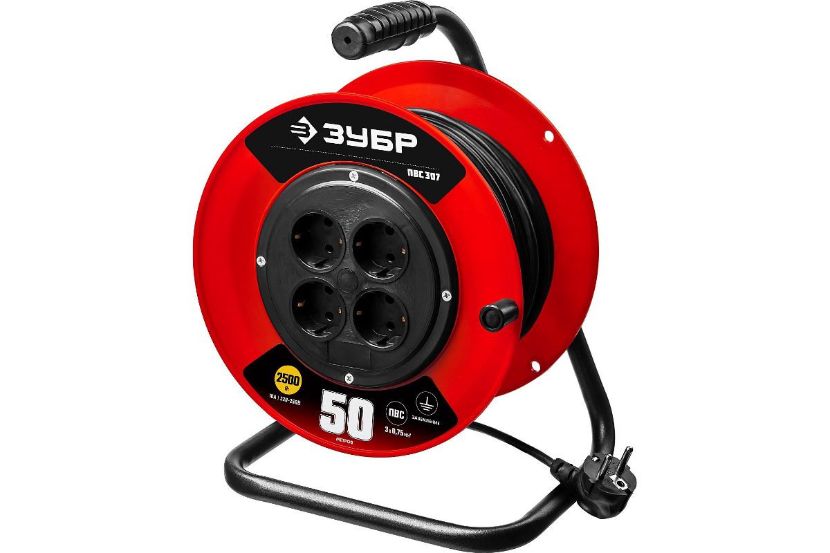 Удлинитель ЗУБР 55083-50 на катушке ''ПВС 307'', 50 м, 2500 Вт, 4 а, ПВС 3х0,75 кв мм