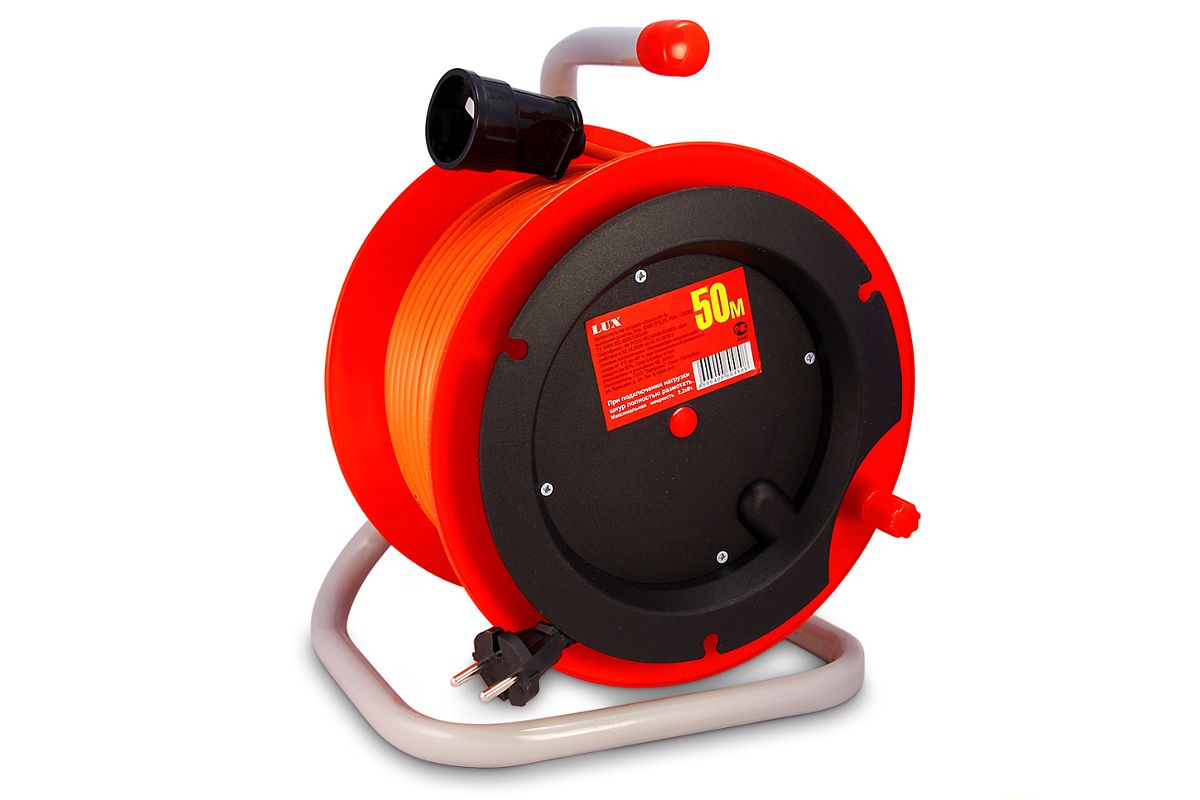 Удлинитель LUX К1-О-50 на катушке пвс 2x0.75 50м 6А выносная розетка б/з
