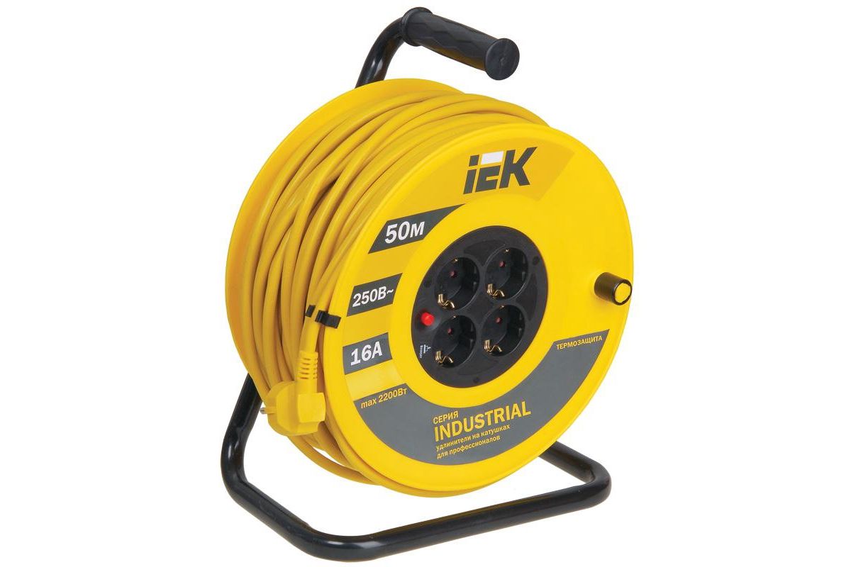 Удлинитель ИЭК УК50 ''Industrial'' на катушке 4а с/з 50м (ПВС 3х1,5) с термозащитой