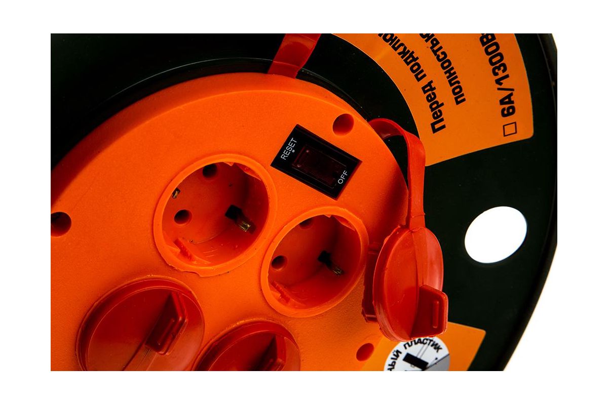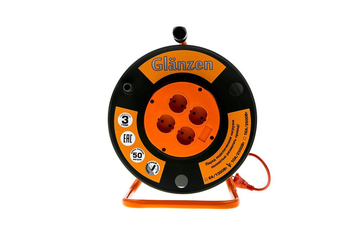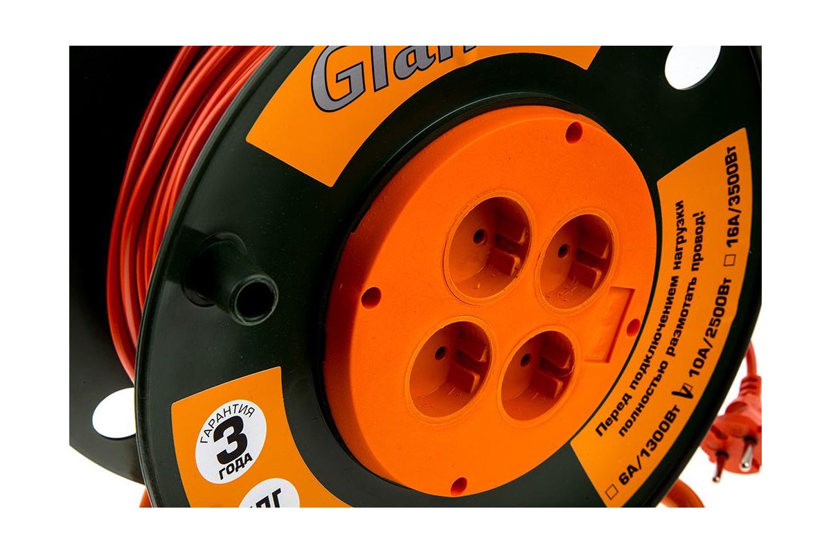 Удлинитель на катушке GLANZEN ЕВ-50-003 50м 2х1мм 10А 2500Вт, 4 розетки
