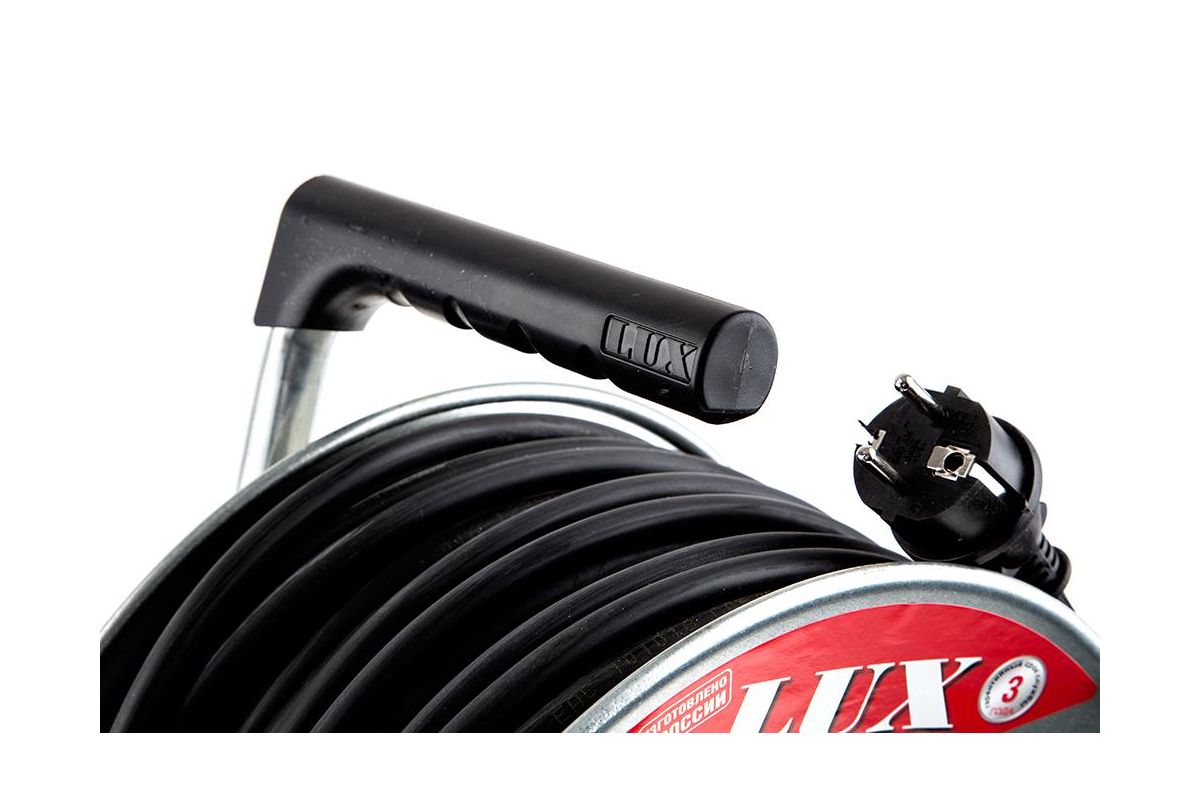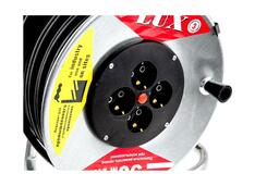 LUX К4-Е-50 – силовой удлинитель на металлической катушке. Используется для подключения бытовых электроприборов класса защиты I и II. Будет полезен на стройплощадках или во время уличных работ. Длина– 50 м.