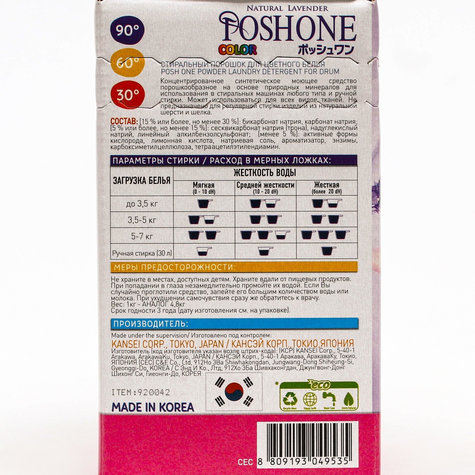 Стиральный порошок PoshOne COLOR LAVANDA, концентрат, 1000 г