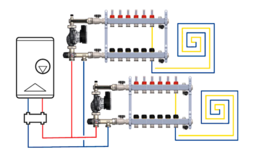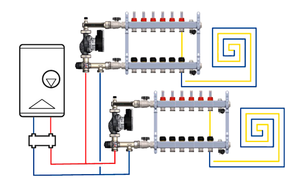 Насосно-смесительный узел для теплого пола Barberi понижает температуру для водяного теплого пола, которая колеблется от 25 до 35 градусов. У системы отопления есть более высокотемпературные потребители такие, как радиаторы отопления, которым необходимо от 50 до 70 градусов, и также от 50 до 70 на нагрев бойлера косвенного нагрева (водонагревателя). Поэтому котел должен греть 70 градусов и подавать их к радиаторам и бойлеру. Смесительный узел забирает из системы 70 градусов и смешивает её с обраткой водяного теплого пола у которой примерно 25 градусов, в результате получается требуемая температура для водяного теплого пола 30-35 градусов.