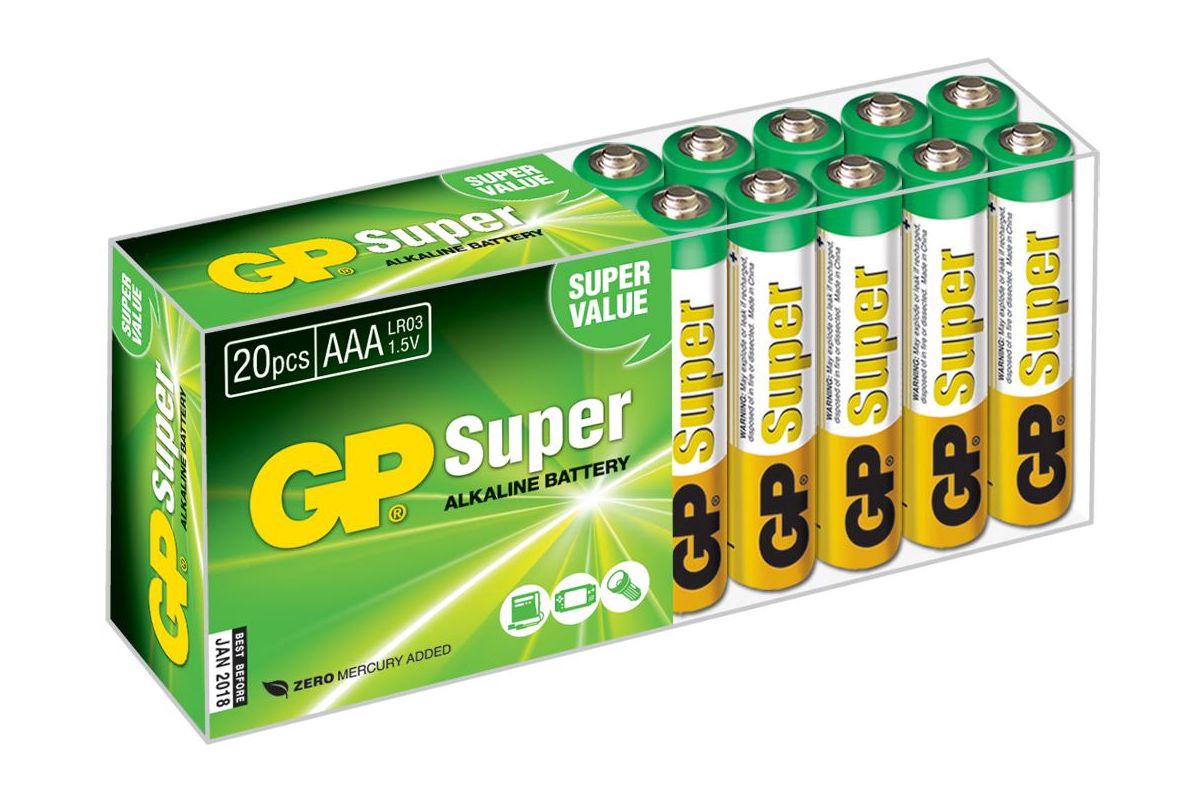 Алкалиновые батарейки GP Super Alkaline 24А ААA в наборе 20шт. в пленке GP 24A-2CRVS20 цена за блис. Батарейка GP Super Alkaline АAА (LR03) 20 шт.