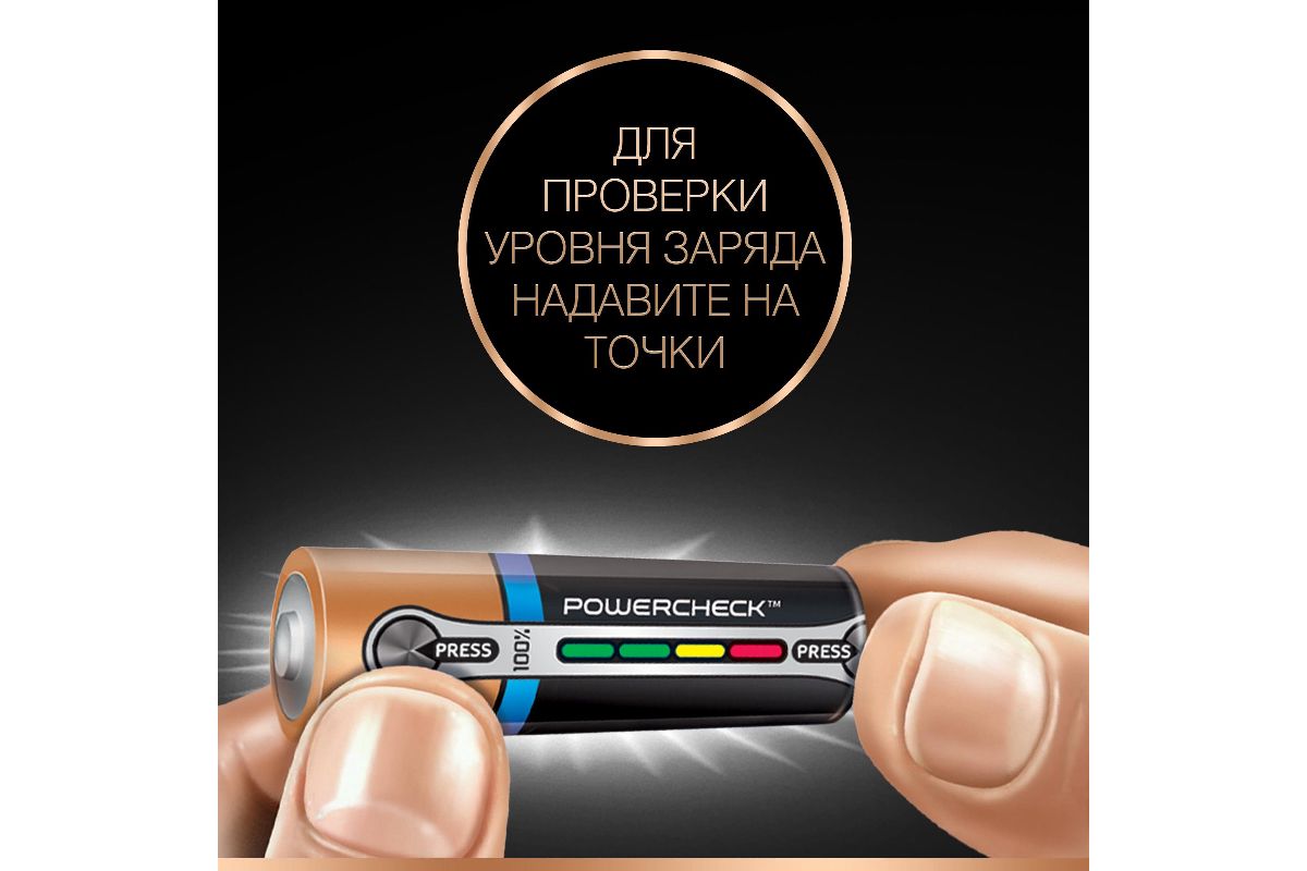 Duracell предлагает широкий выбор батареек для электронных устройств, требующих надежного источника питания. Duracell Ultra Power размера AA — щелочные батарейки, которые идеально подойдут для всех Ваших устройств. Благодаря им энергоемкие устройства будут работать на полную мощность. Щелочные батарейки Duracell Turbo Max — до 100 % больше энергии* (*В батарейках AA по сравнению с результатами испытания минимальной продолжительности работы цифровой фотокамеры по стандарту IEC в 2015 г. Результаты могут различаться в зависимости от устройства и характера использования) в размерах AA и AAA. Технология Powercheck™ позволяет легко определить уровень заряда каждой батарейки, чтобы избежать нежелательных перебоев в работе устройств, и повторно использовать батарейки в менее энергоемких устройствах даже тогда, когда они перестают работать в более энергоемких (храните батарейки вместе и не смешивайте их с неиспользованными во втором устройстве). Достаточно всего лишь нажать на белые точки, расположенные на обоих концах батарейки, — и индикатор покажет оставшийся уровень заряда. Кроме того, благодаря особой технологии Duralock неиспользованные батарейки Duracell могут сохранять заряд до 10 лет при хранении в обычных условиях. Это лучшие щелочные батарейки Duracell для таких энергоемких устройств, как цифровые камеры, фотовспышки, электронные игрушки и аудиосистемы высокой мощности. И, конечно же, они прекрасно подойдут для часто используемых устройств: механизированных игрушек, фонариков, портативных игровых устройств, электробритв, CD-плееров, электрических зубных щеток и т. д.