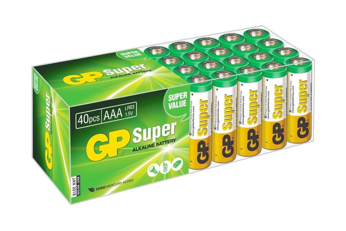 Алкалиновые батарейки GP Super Alkaline 24А ААA в наборе 40шт. в пленке GP 24A-2CRVS40 цена за блис. Батарейка GP Super Alkaline АAА (LR03) 40 шт.