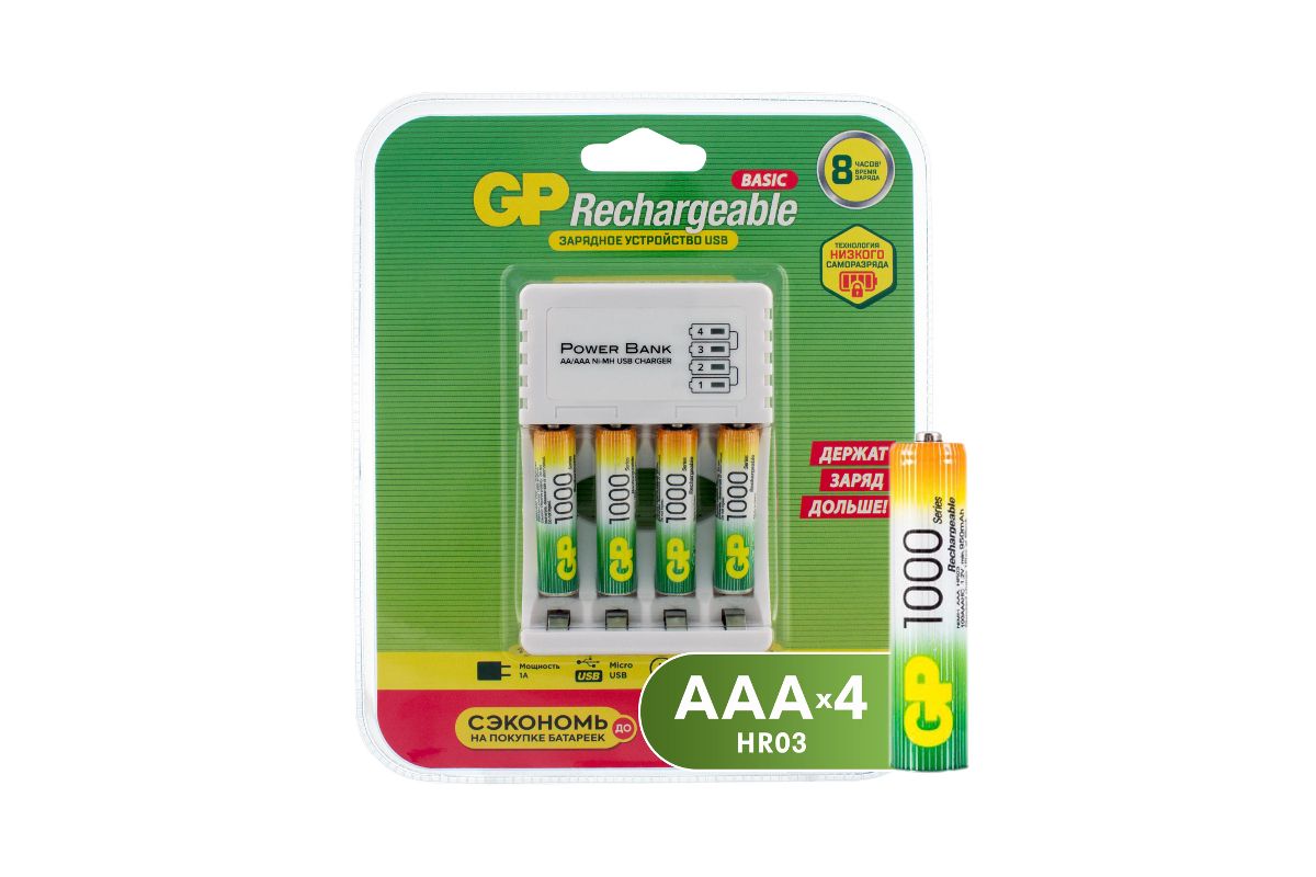 Зарядное устройство USB 4 аккумулятора GP АAА (GP100AAAHC/CPB-2CR4)