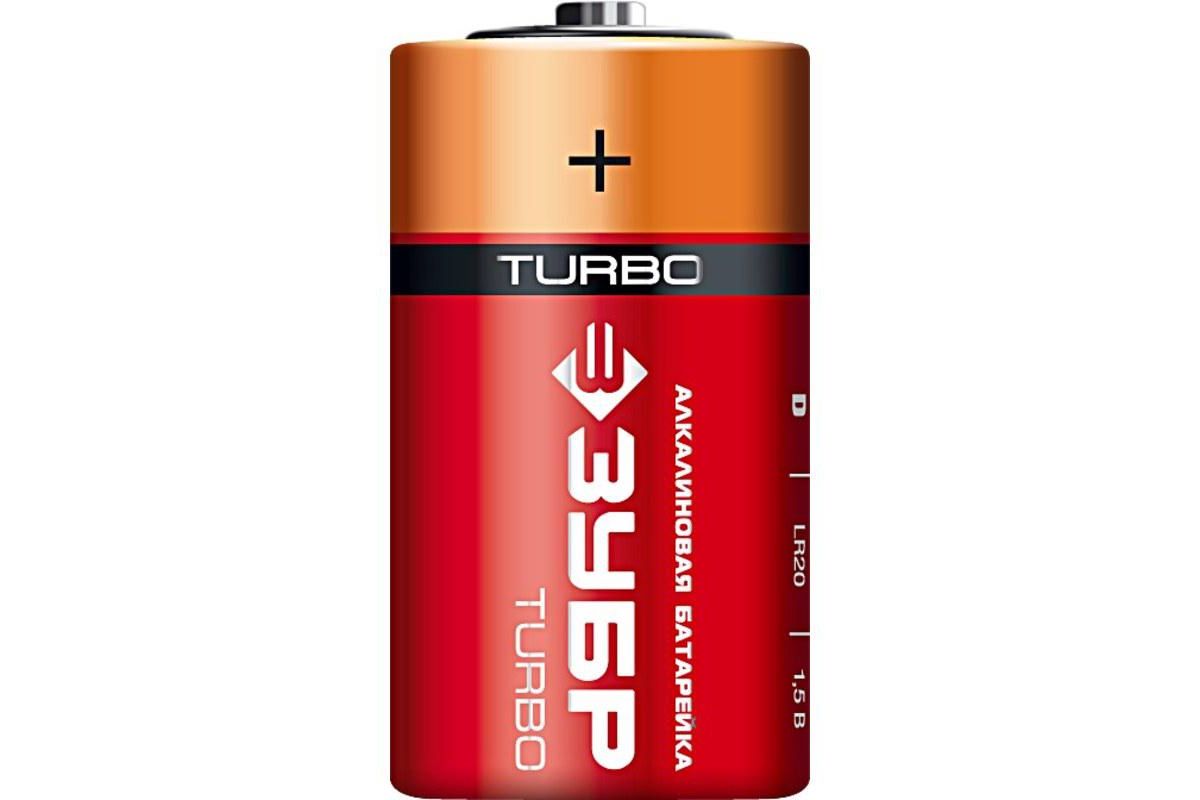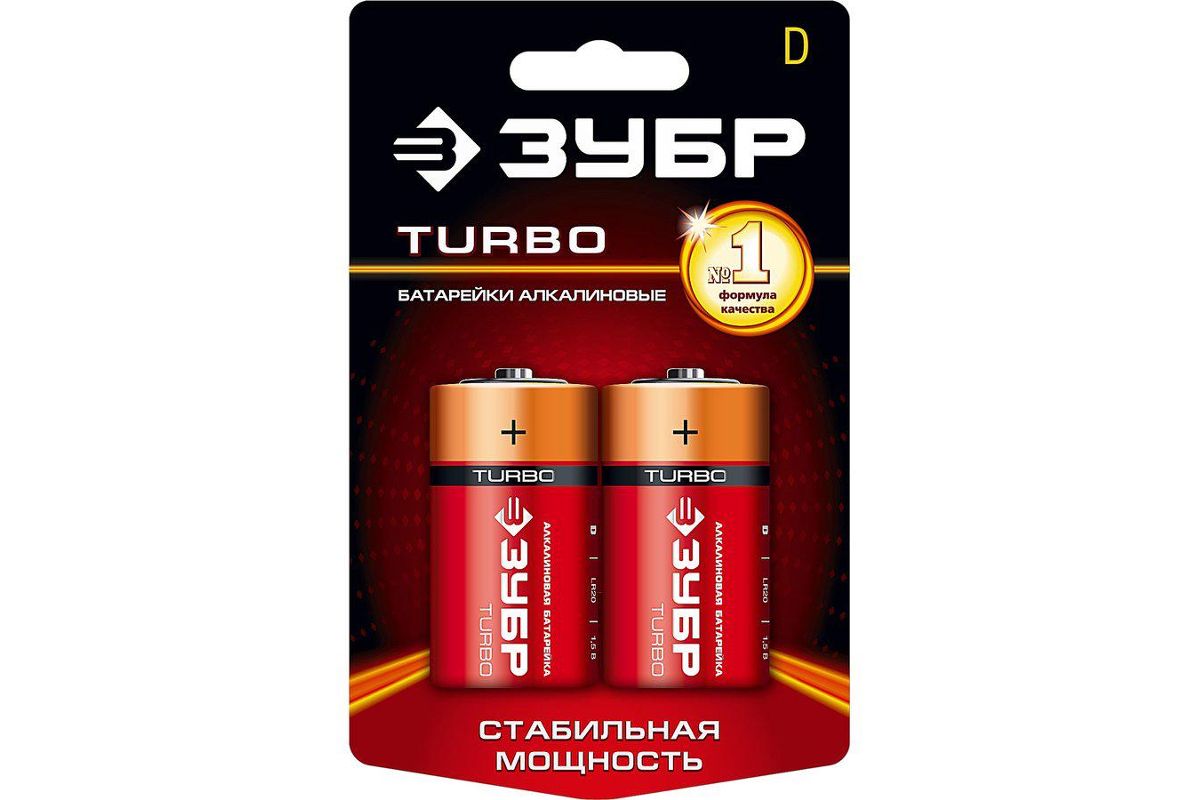 Батарейка ЗУБР ''TURBO'' 59217-2C щелочная (алкалиновая), D, 1.5В, цена за блистер, 2шт на карточке