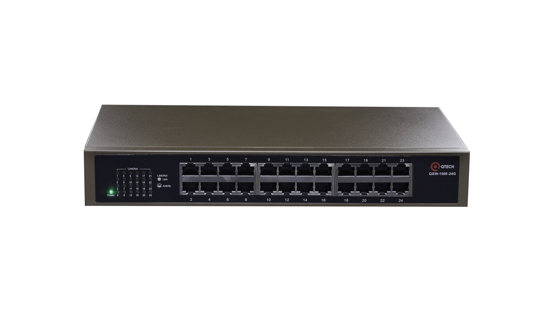 Неуправляемый коммутатор уровня L2, 24 порта 10/100/1000BASE-T, 8K MAC адресов, встроенный БП, 220В AC, размеры ШхГхВ (294x180x44 мм) QTECH QSW-1500-24G