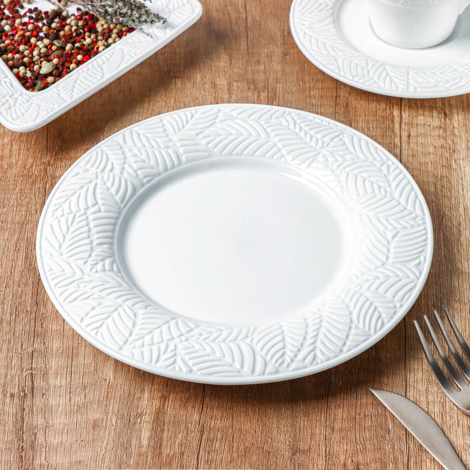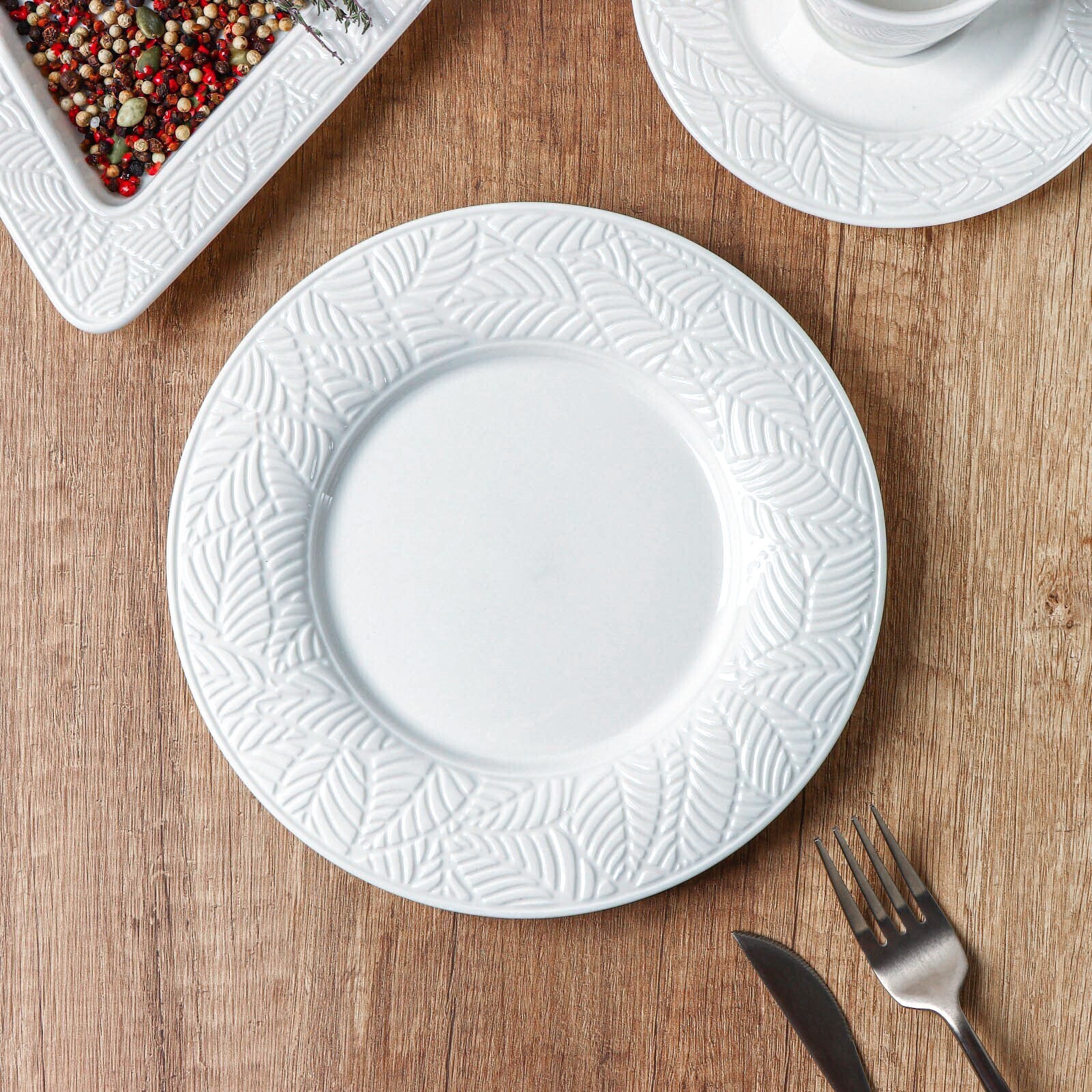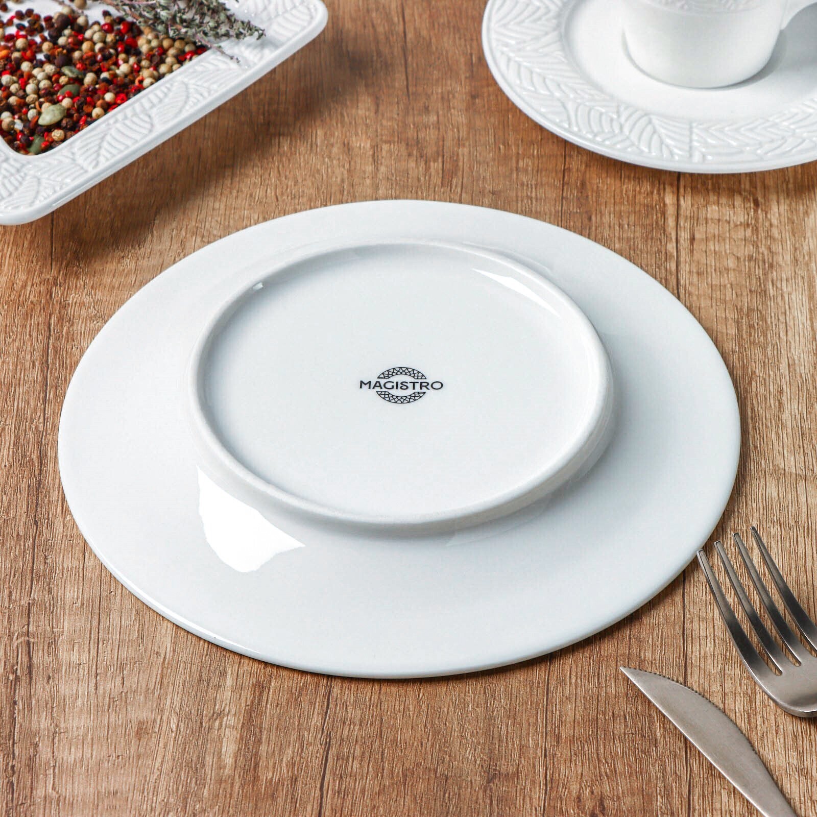 Посуда Magistro серии Сrotone – это безупречно изящная коллекция посуды из белоснежного фарфора, достойная украсить даже королевский стол. Традиционная форма изделий остается всегда актуальной и выглядит благородно. Рельефный узор в виде листьев выглядит особенно утончённо и придает посуде индивидуальности. Посуда Magistro Сrotone идеально впишется в любой современный интерьер!