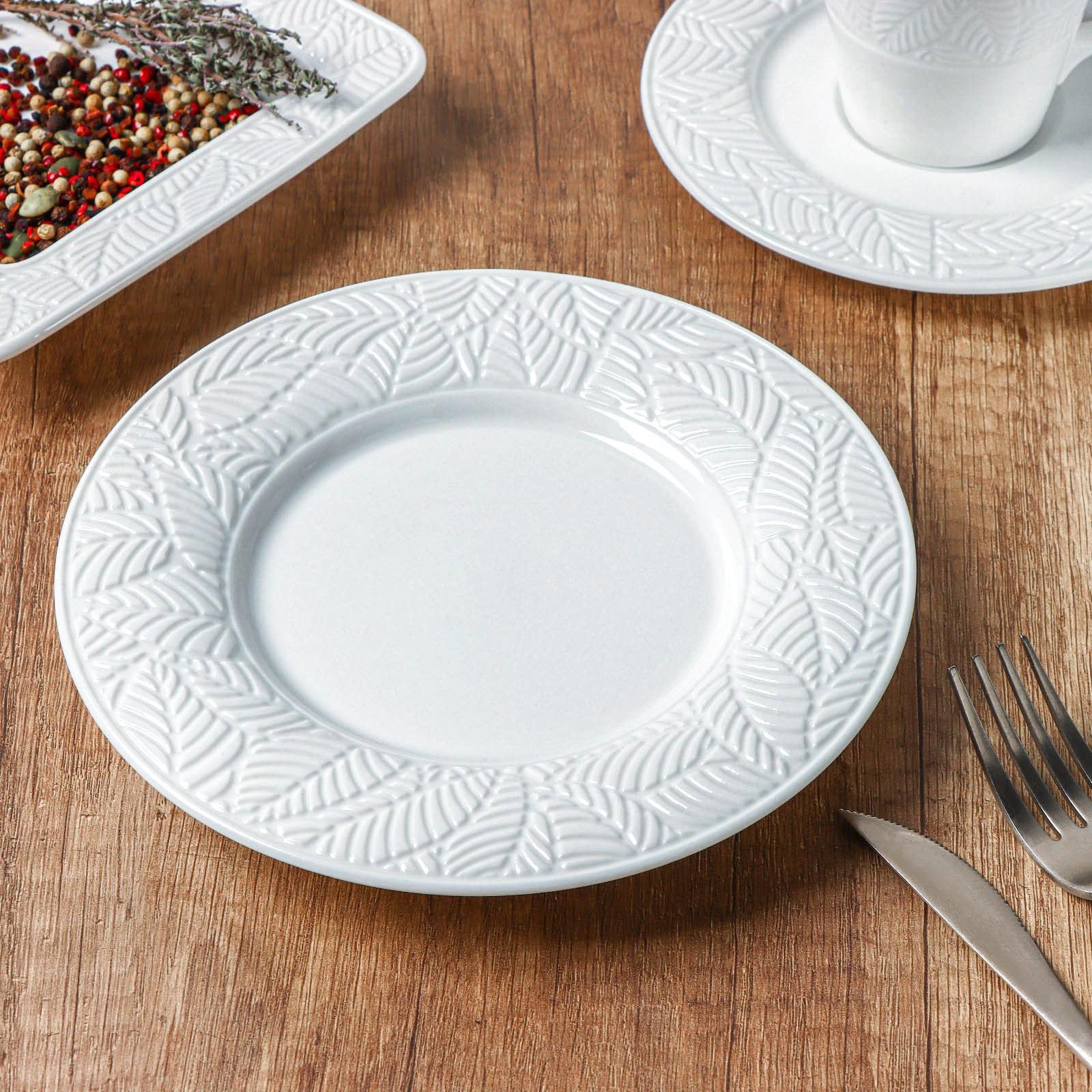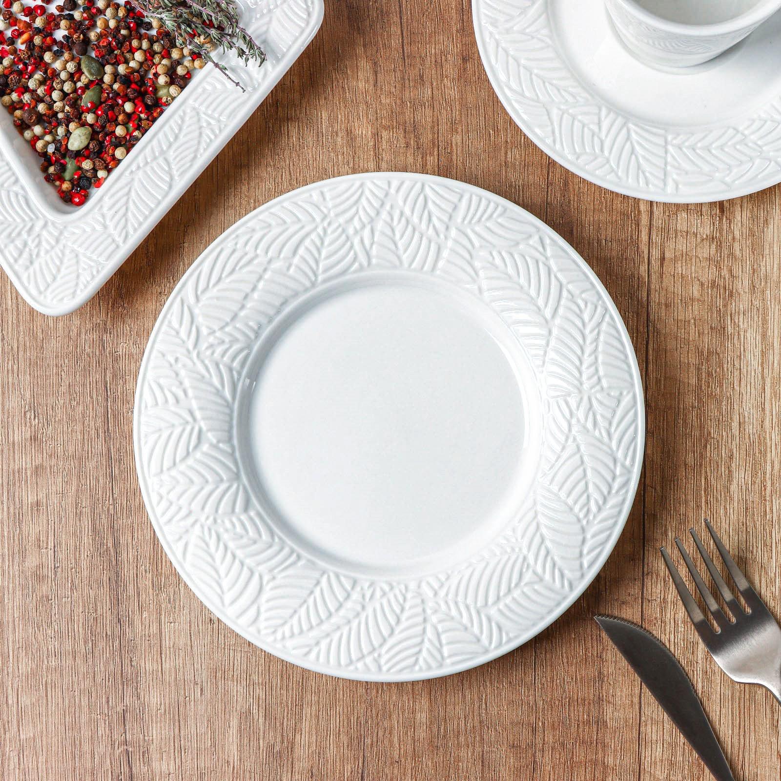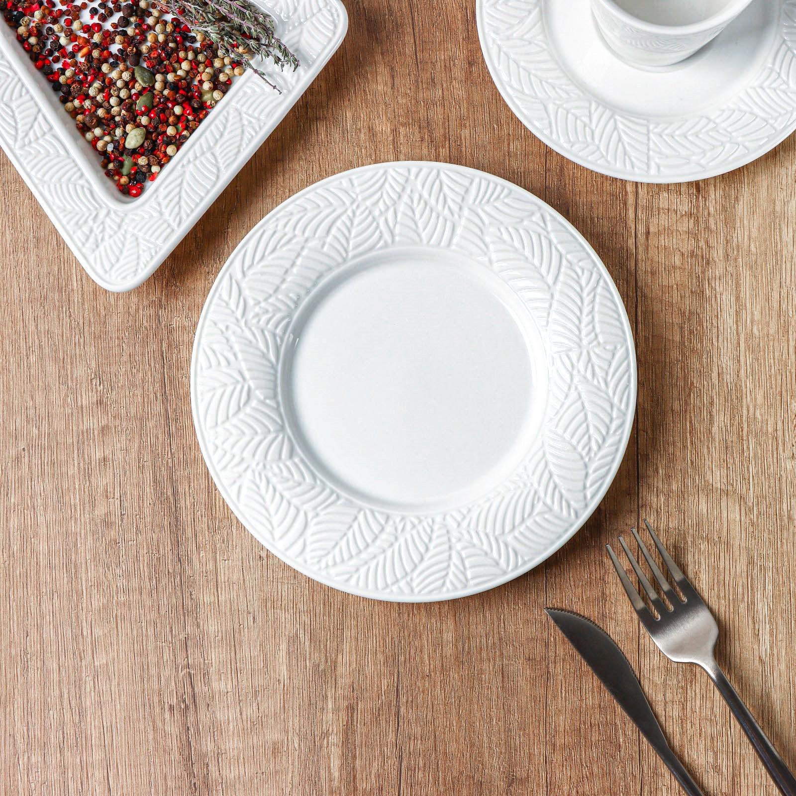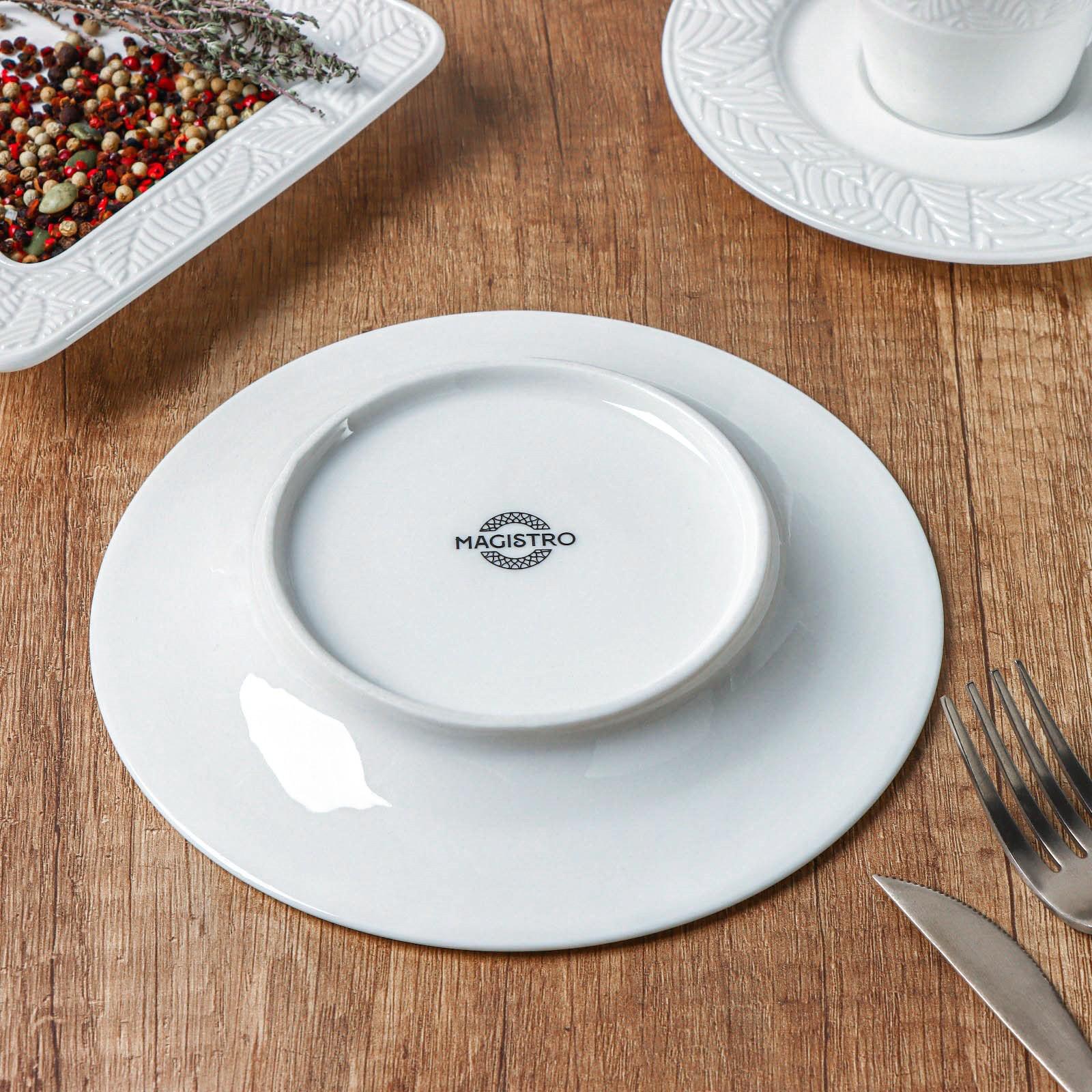 Посуда Magistro серии Сrotone – это безупречно изящная коллекция посуды из белоснежного фарфора, достойная украсить даже королевский стол. Традиционная форма изделий остается всегда актуальной и выглядит благородно. Рельефный узор в виде листьев выглядит особенно утончённо и придает посуде индивидуальности. Посуда Magistro Сrotone идеально впишется в любой современный интерьер!
