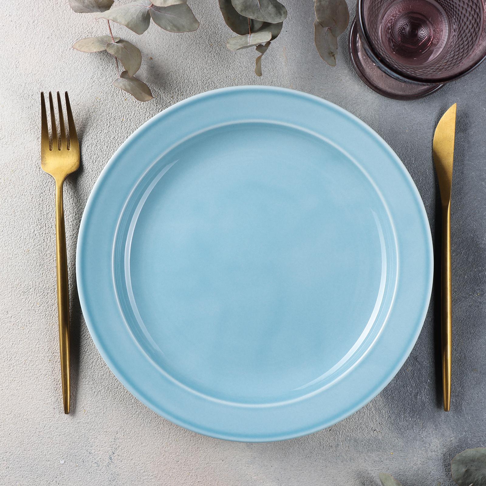 Тарелка мелкая «Акварель», d=24 см, цвет голубой