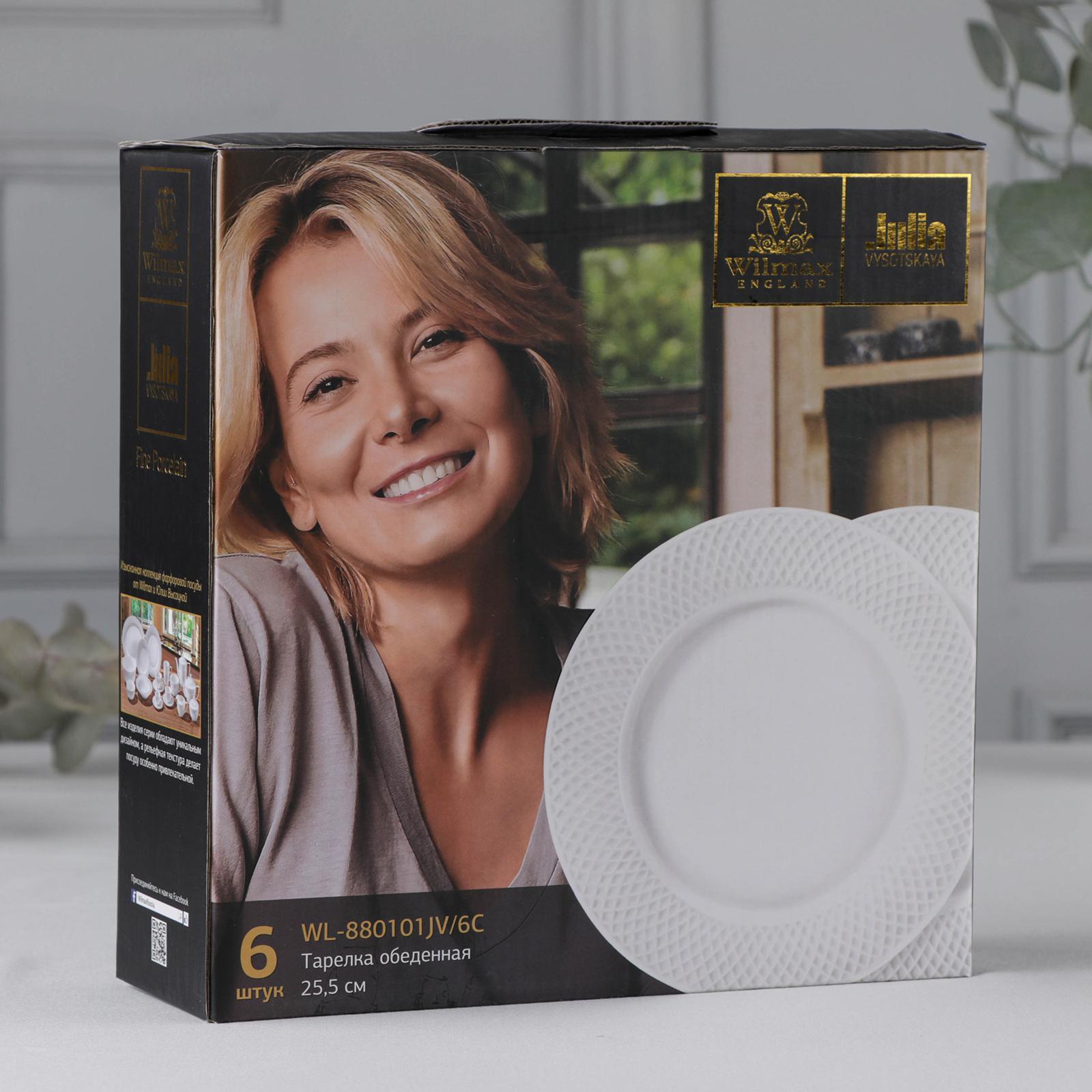 Набор тарелок обеденных фарфоровый «Юлия Высоцкая», d=25,5 см, 6 шт — это плавные линии, кристальная прозрачность и безукоризненное качество. Чудо ли это? Нет, это торговая марка Wilmax — выбор успешных людей.