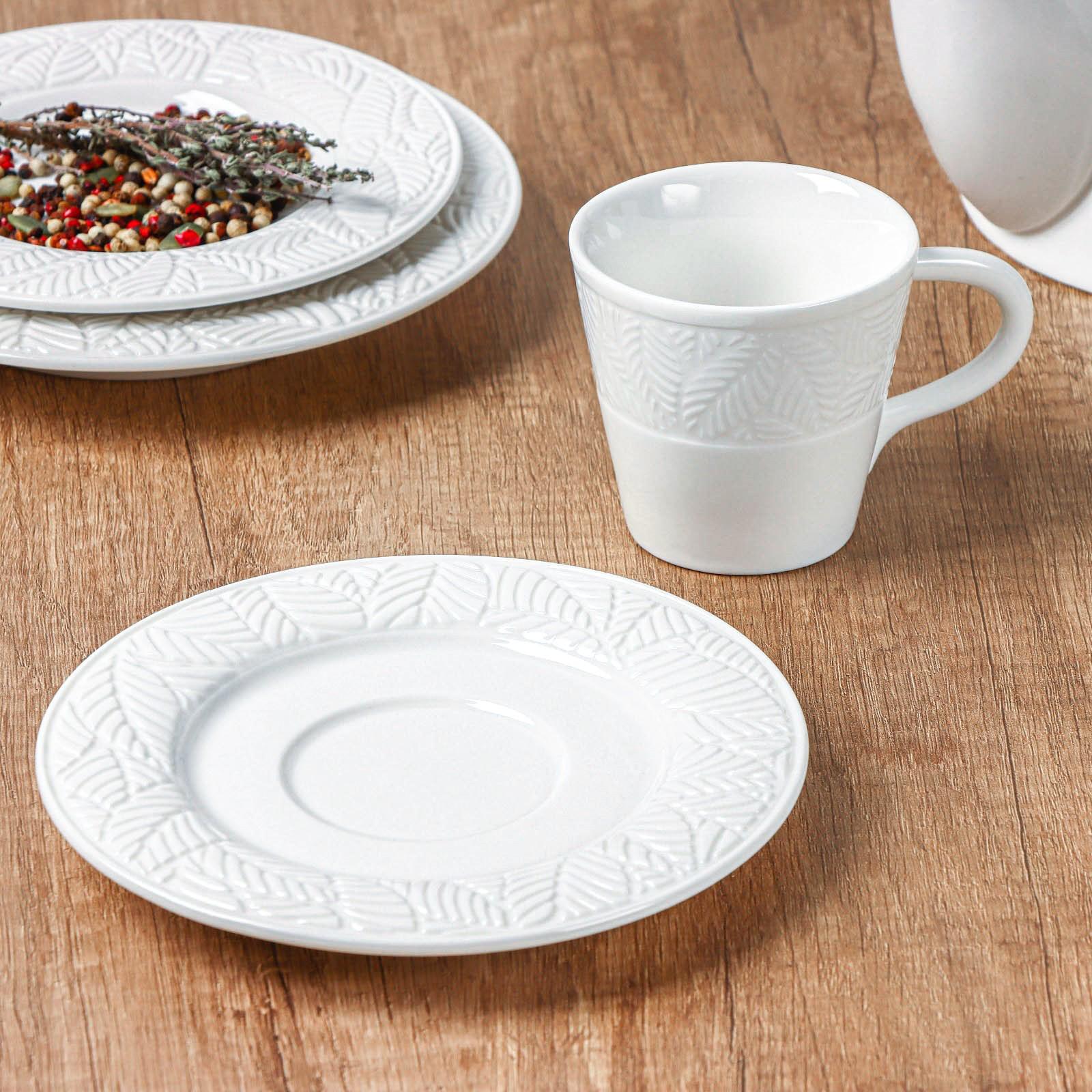 Посуда Magistro серии Сrotone – это безупречно изящная коллекция посуды из белоснежного фарфора, достойная украсить даже королевский стол. Традиционная форма изделий остается всегда актуальной и выглядит благородно. Рельефный узор в виде листьев выглядит особенно утончённо и придает посуде индивидуальности. Посуда Magistro Сrotone идеально впишется в любой современный интерьер!