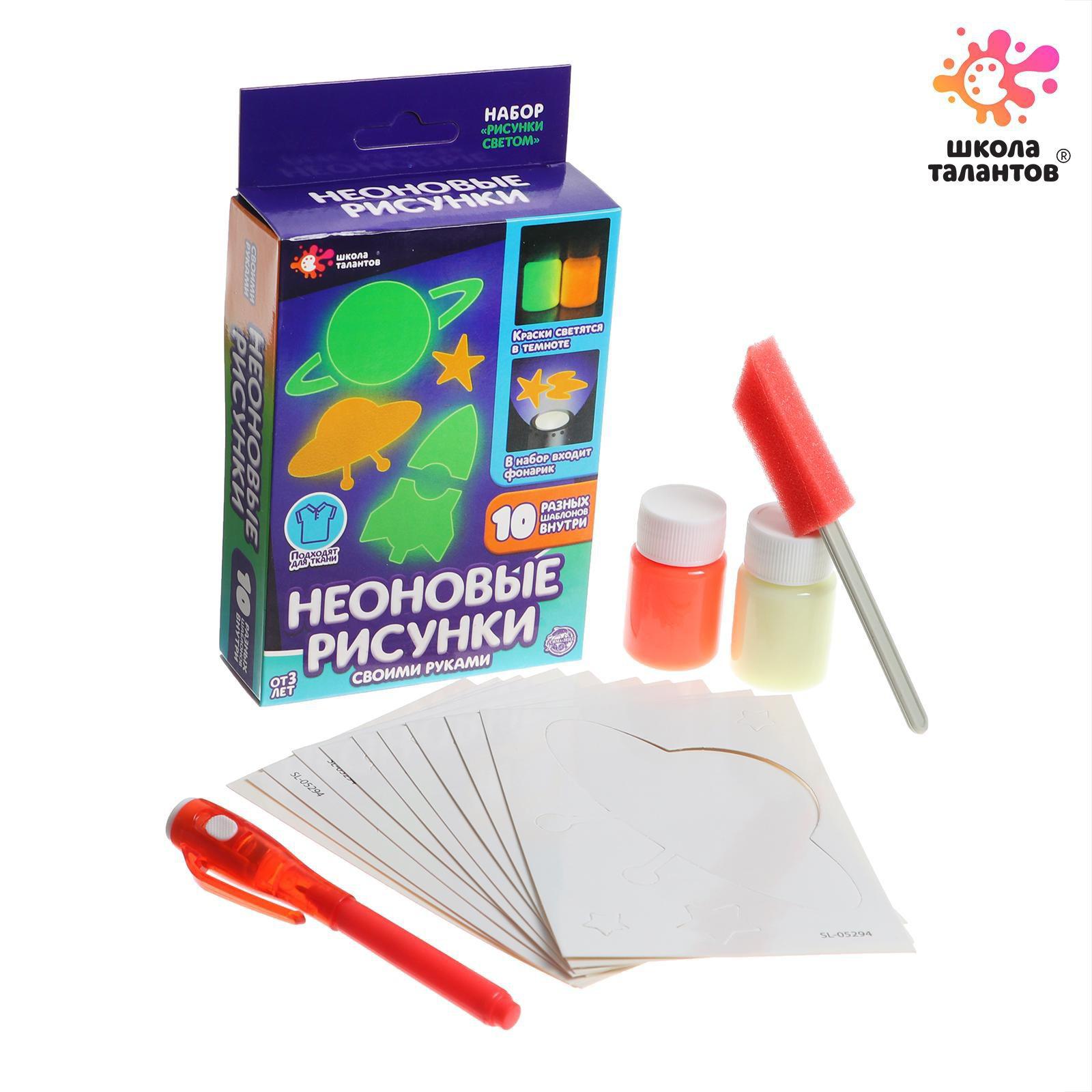 С набором для творчества «Неоновые рисунки» ребёнок сможет создать волшебные картины, которые будут светиться в темноте.