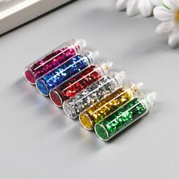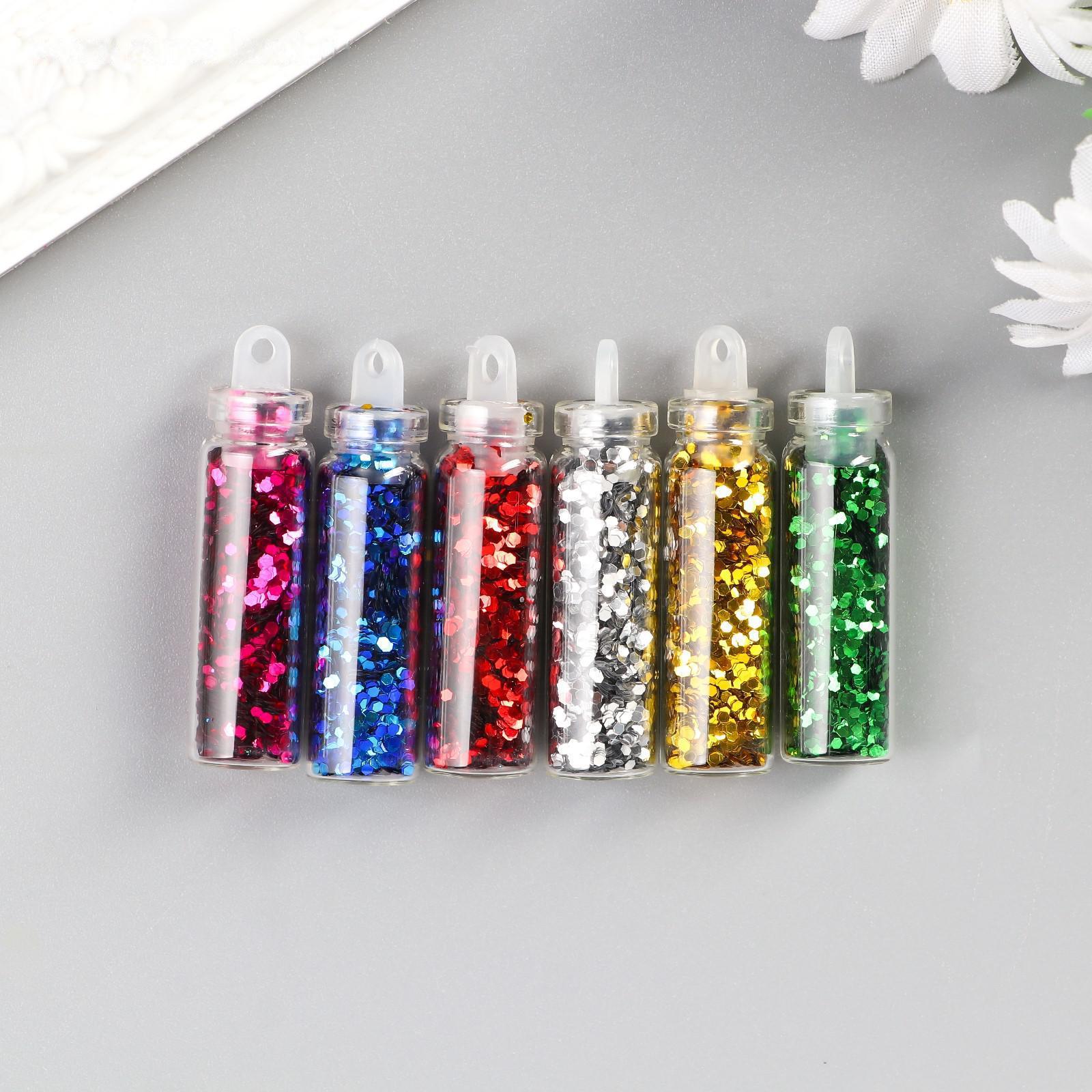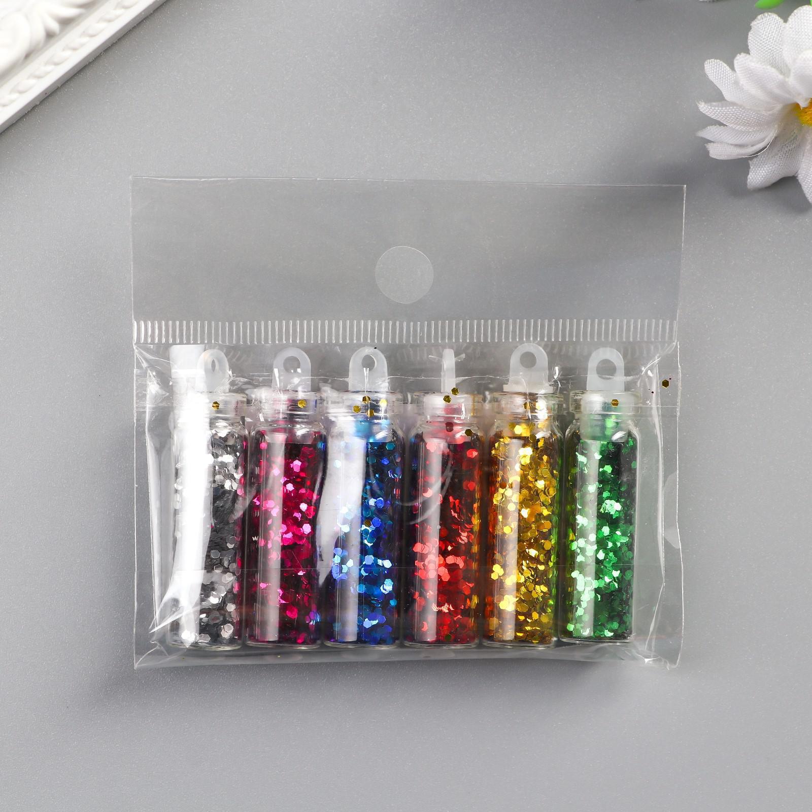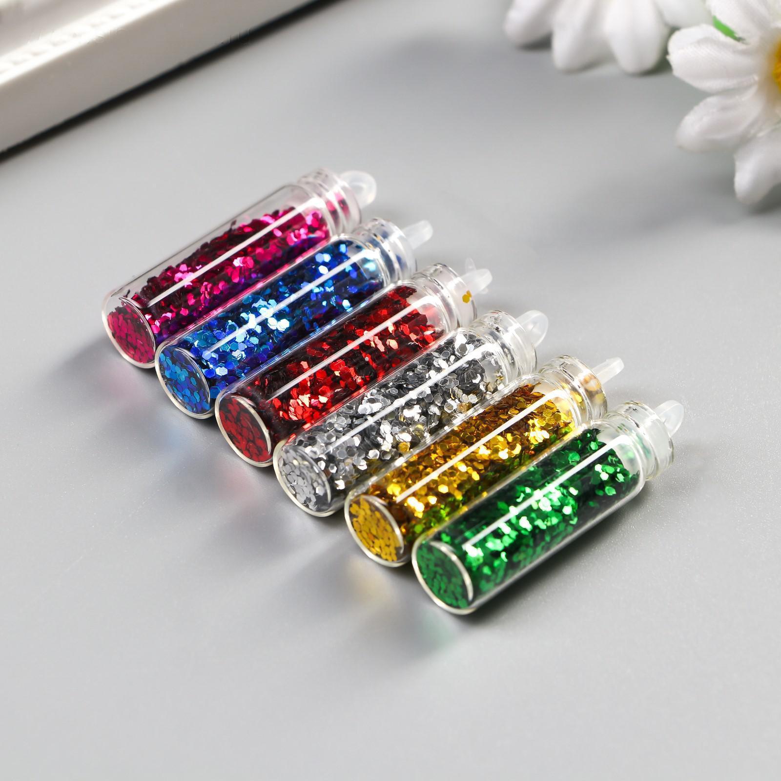 Глиттер набор 6 бутылочек "Хлопья блеск", вес глиттера в 1 бут - 1,2 гр, цвет микс