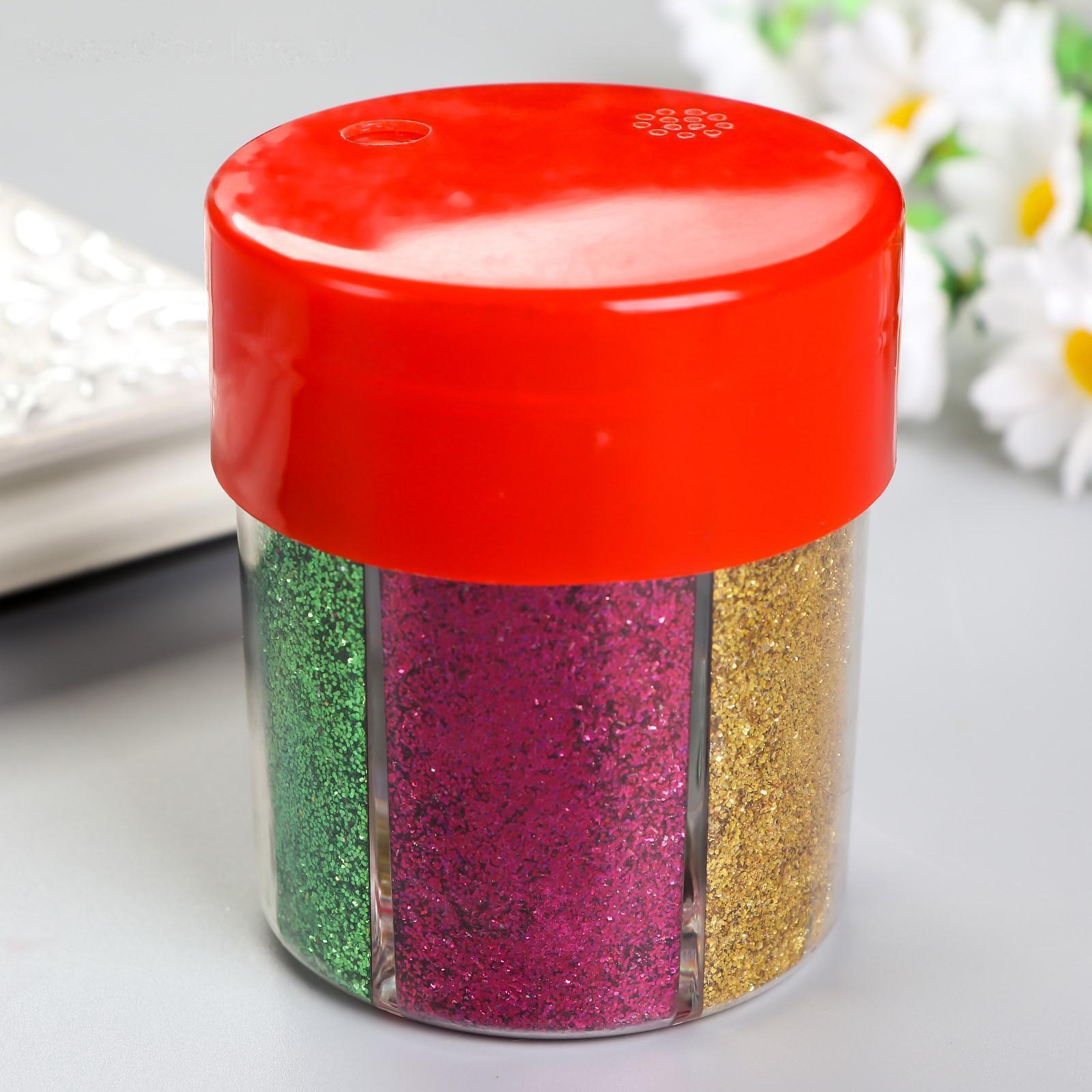 Глиттер в банке с дозатором 6 делений "Блеск" 80 гр МИКС
